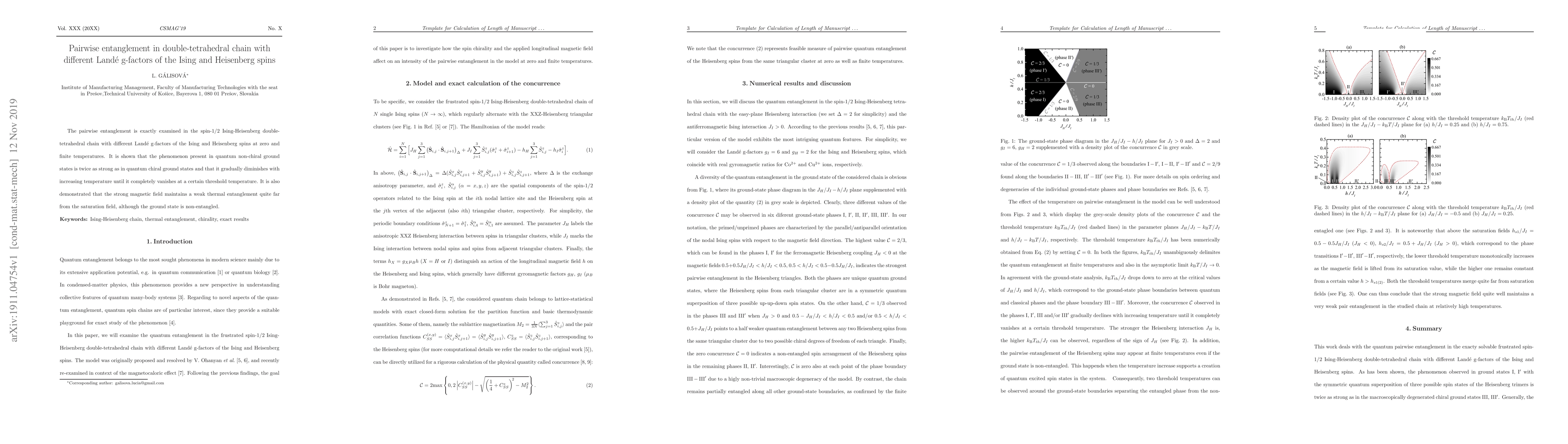 This paper investigates the pairwise entanglement in a spin-1/2 Ising-Heisenberg double-tetrahedral chain with varying Landé g-factors, showing that entanglement is stronger in non-chiral ground states compared to chiral ones, and diminishes with temperature until it vanishes at a critical threshold. Strong magnetic fields maintain weak thermal entanglement even when the ground state is non-entangled.