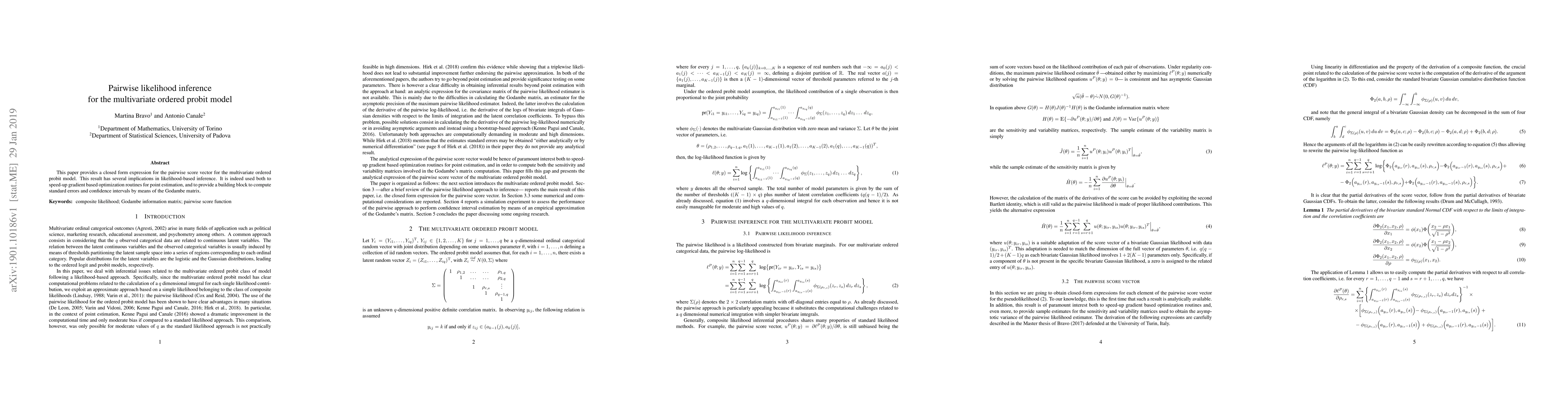 This paper derives a closed form pairwise score vector for the multivariate ordered probit model, enhancing likelihood-based inference through faster optimization and improved computation of standard errors and confidence intervals via the Godambe matrix.