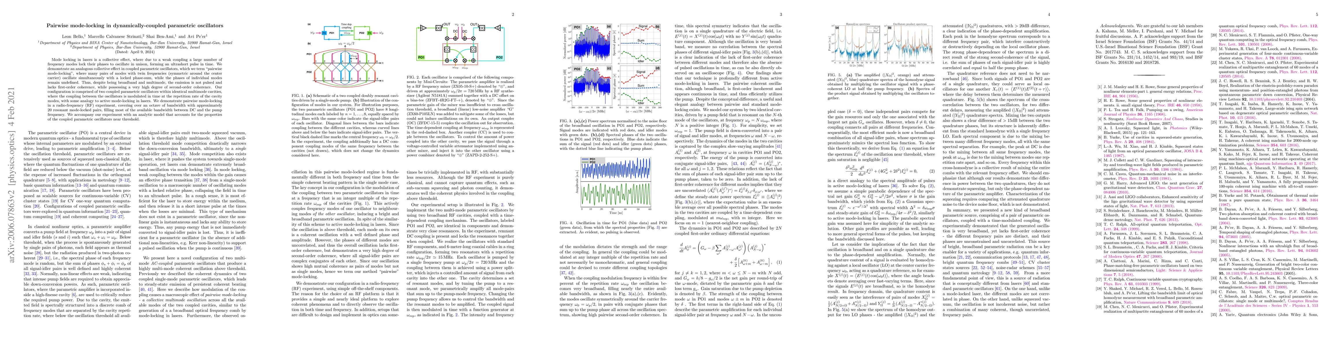 The research demonstrates pairwise mode-locking in dynamically-coupled parametric oscillators using two coupled parametric oscillators within identical multimode cavities. The coupling between the oscillators is modulated in time at the repetition rate of the cavity modes.