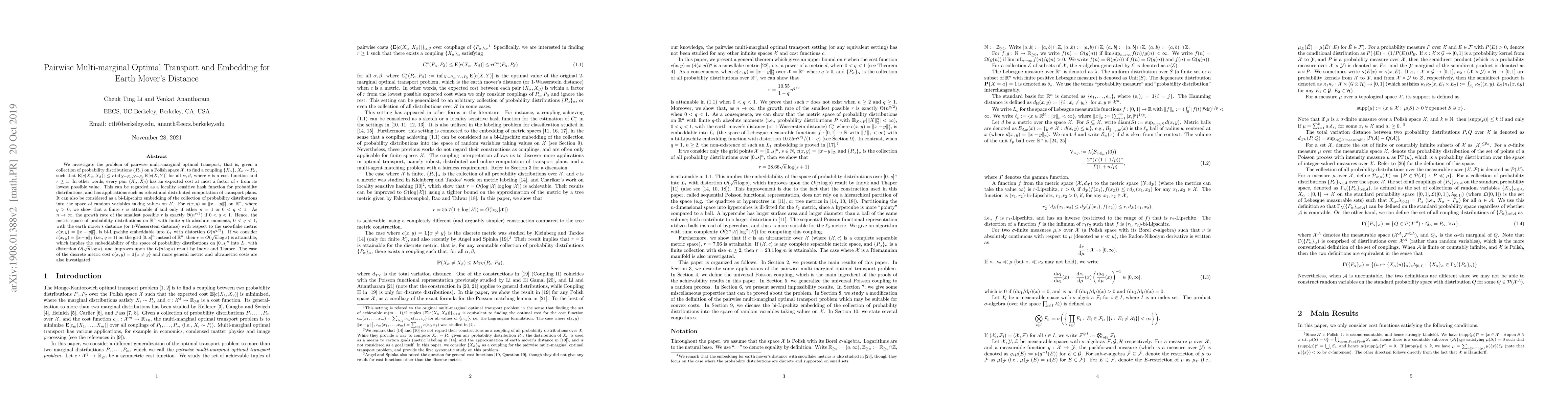 We investigate the problem of pairwise multi-marginal optimal transport, that
