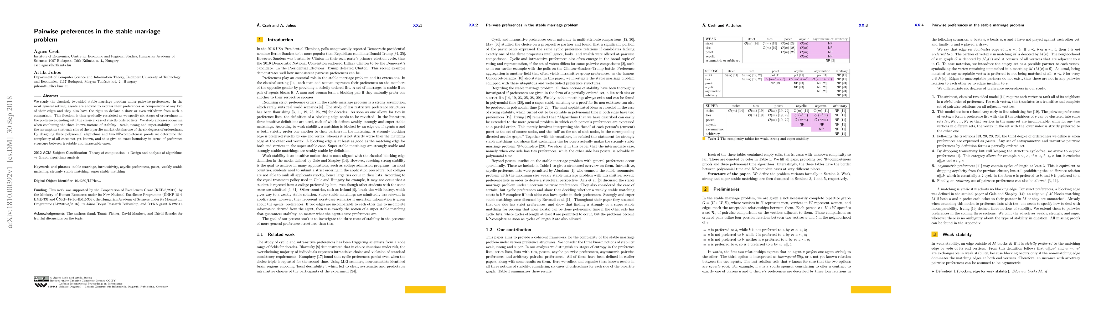 This paper explores the stable marriage problem under various levels of preference orderedness, from free comparisons to strictly ordered lists, and examines the stability notions of weak, strong, and super-stability. It provides polynomial algorithms and NP-completeness proofs to determine the complexity of different preference structures.
