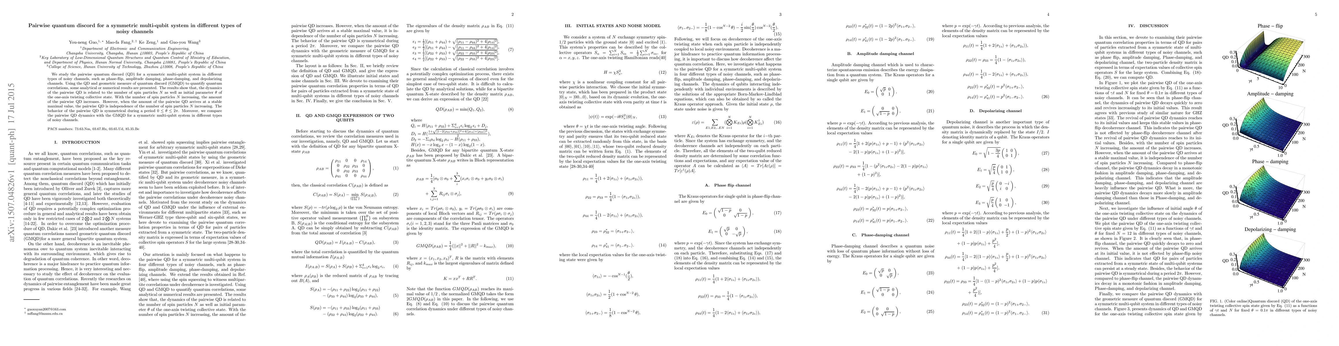 This paper investigates the pairwise quantum discord (QD) in symmetric multi-qubit systems under various noisy channels, showing that the dynamics depend on the number of qubits and initial parameters. The study finds that while pairwise QD increases with more qubits, it stabilizes and becomes independent of further increases in qubit count.