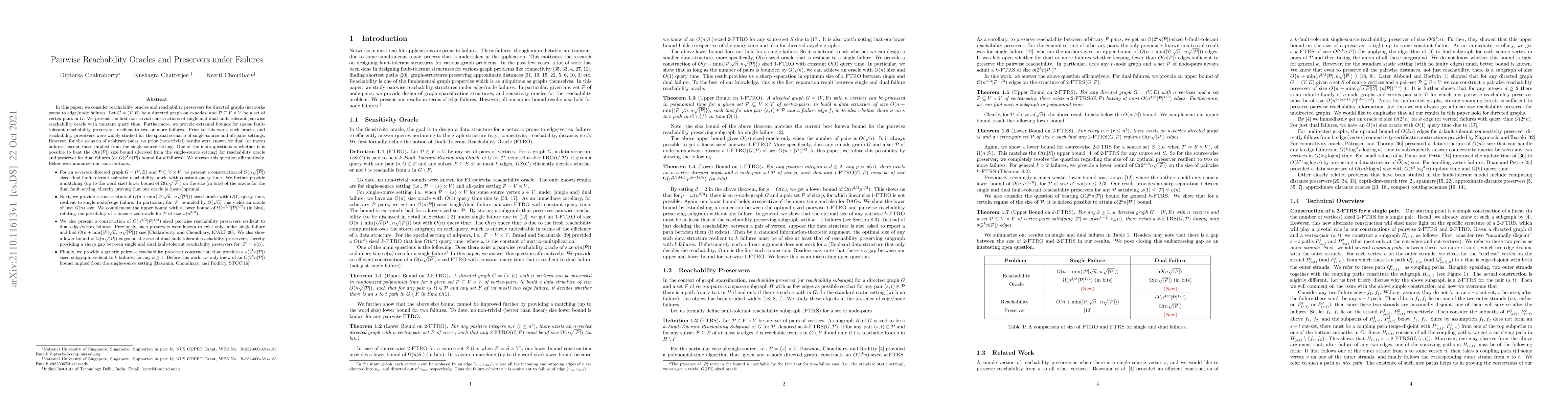 This paper constructs non-trivial fault-tolerant pairwise reachability oracles and preservers for directed graphs with constant query time, addressing the challenge of edge/node failures. It provides solutions that outperform existing $O(n |P|)$ size bounds for dual failures, offering new insights into resilience for arbitrary pairs.