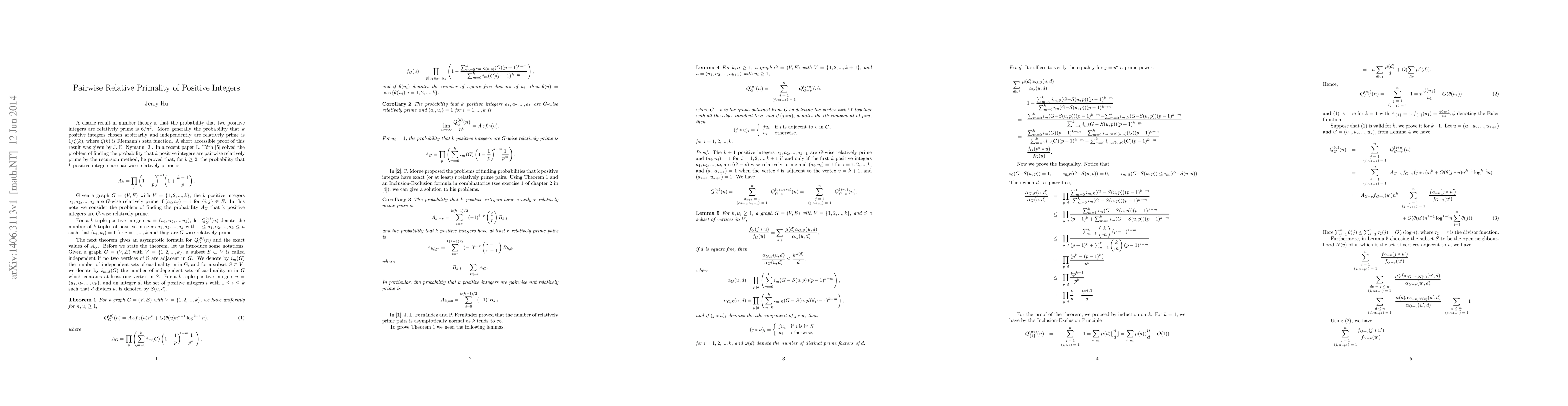 Given a graph $G=(V,E)$ with $V=\{1,2,...,k\}$, the $k$ positive integers $a_1,a_2, ...,a_k$ are $G$-wise relatively prime if $(a_i, a_j)=1$ for $\{i,j\} \in E$. In this note we consider the problem of finding the probability $A_G$ that k positive integers are $G$-wise relatively prime. As an application of our results, we solve the problems of finding probabilities that k positive integers have exact (or at least) r relatively prime pairs, which was proposed by P. Moree.