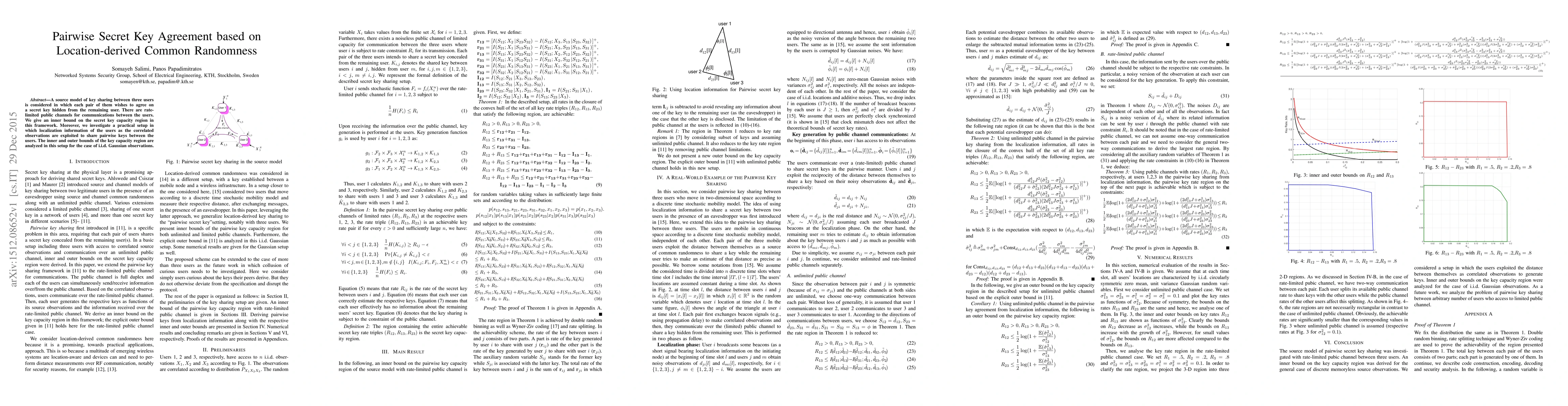 Researchers develop a method for secure key sharing between three users using location-derived common randomness, providing inner bounds on the secret key capacity region and analyzing its feasibility for Gaussian observations.