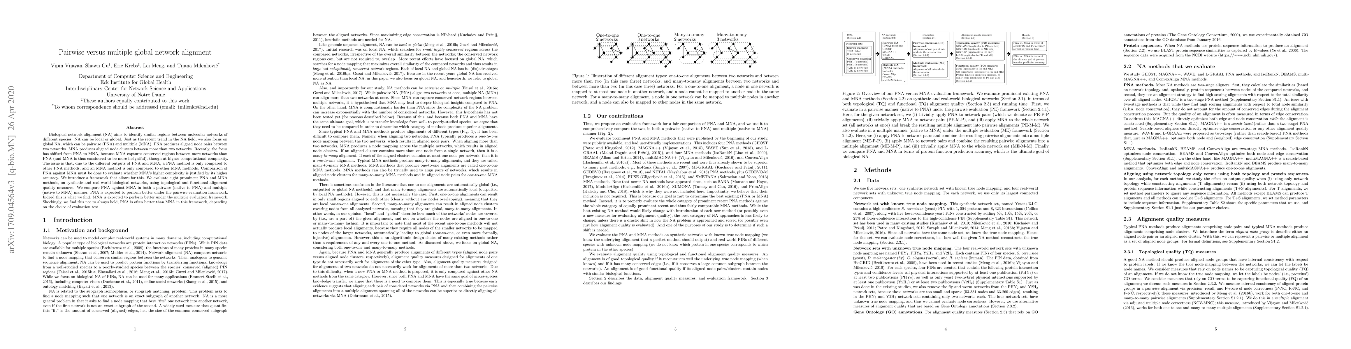 This paper introduces a framework to compare pairwise network alignment (PNA) and multiple network alignment (MNA) methods, finding that PNA often outperforms MNA even in multiple network scenarios, contrary to the expectation that MNA would be more insightful due to its ability to align more networks.
