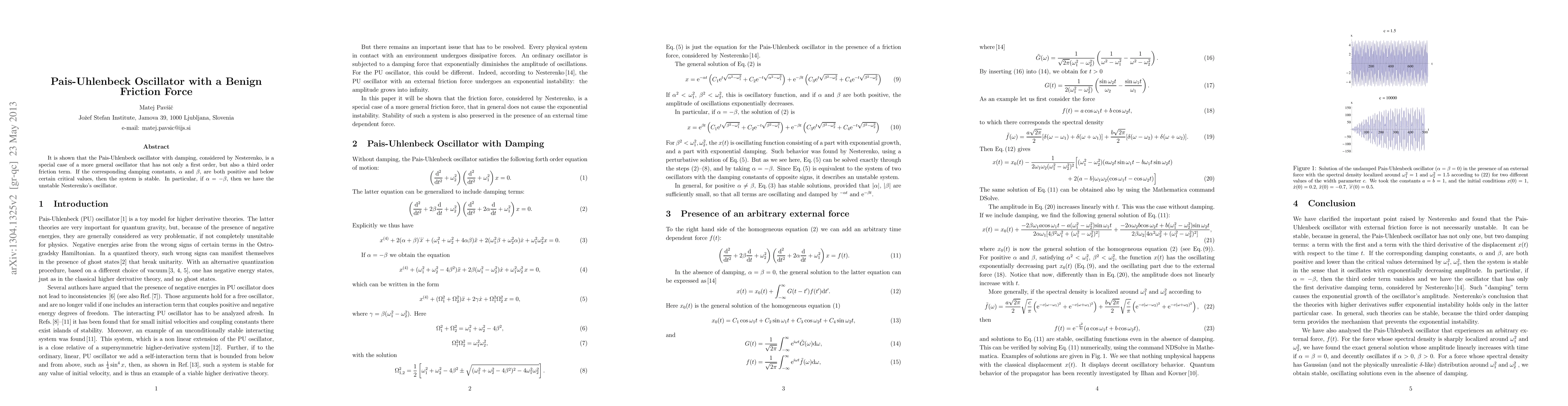 The research explores the Pais-Uhlenbeck oscillator with both first and third order friction terms, demonstrating stability under certain positive damping conditions. It reveals that Nesterenko's unstable oscillator is a special case when the damping constants are equal but opposite.