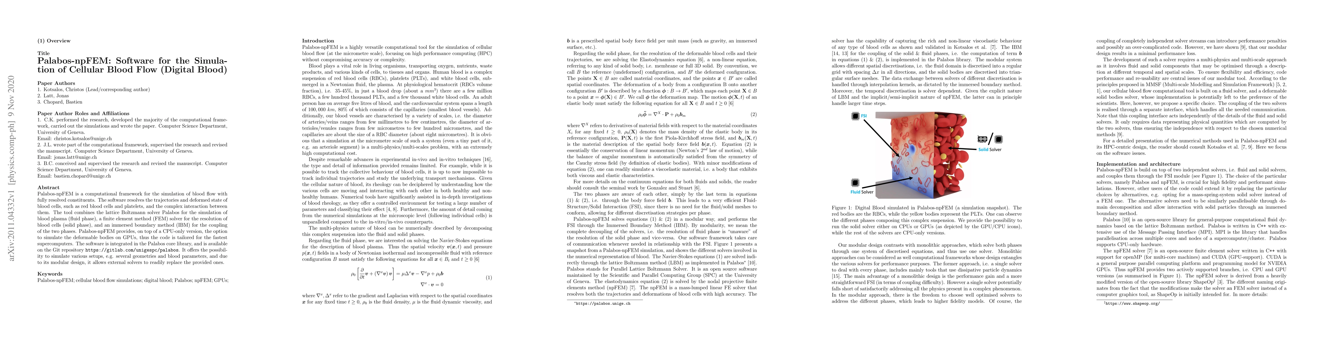 A new software tool called Palabos-npFEM simulates blood flow with fully resolved constituents, including deformed blood cells and their interactions. It combines lattice Boltzmann, finite element, and immersed boundary methods for accurate simulations of various setups.