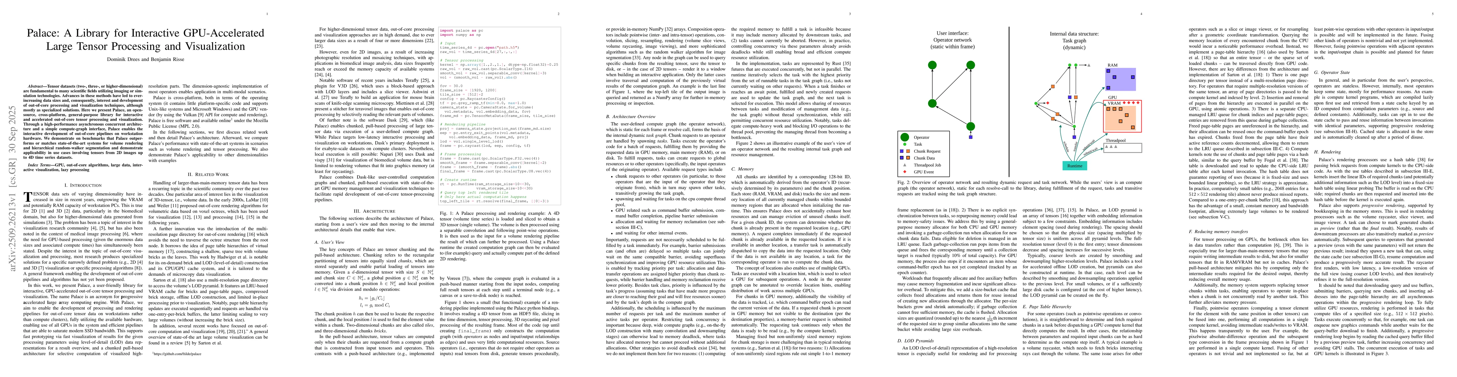 Tensor datasets (two-, three-, or higher-dimensional) are fundamental to many scientific fields utilizing imaging or simulation technologies. Advances in these methods have led to ever-increasing data sizes and, consequently, interest and development of out-of-core processing and visualization techniques, although mostly as specialized solutions. Here we present Palace, an open-source, cross-platform, general-purpose library for interactive and accelerated out-of-core tensor processing and visualization. Through a high-performance asynchronous concurrent architecture and a simple compute-graph interface, Palace enables the interactive development of out-of-core pipelines on workstation hardware. We demonstrate on benchmarks that Palace outperforms or matches state-of-the-art systems for volume rendering and hierarchical random-walker segmentation and demonstrate applicability in use cases involving tensors from 2D images up to 4D time series datasets.