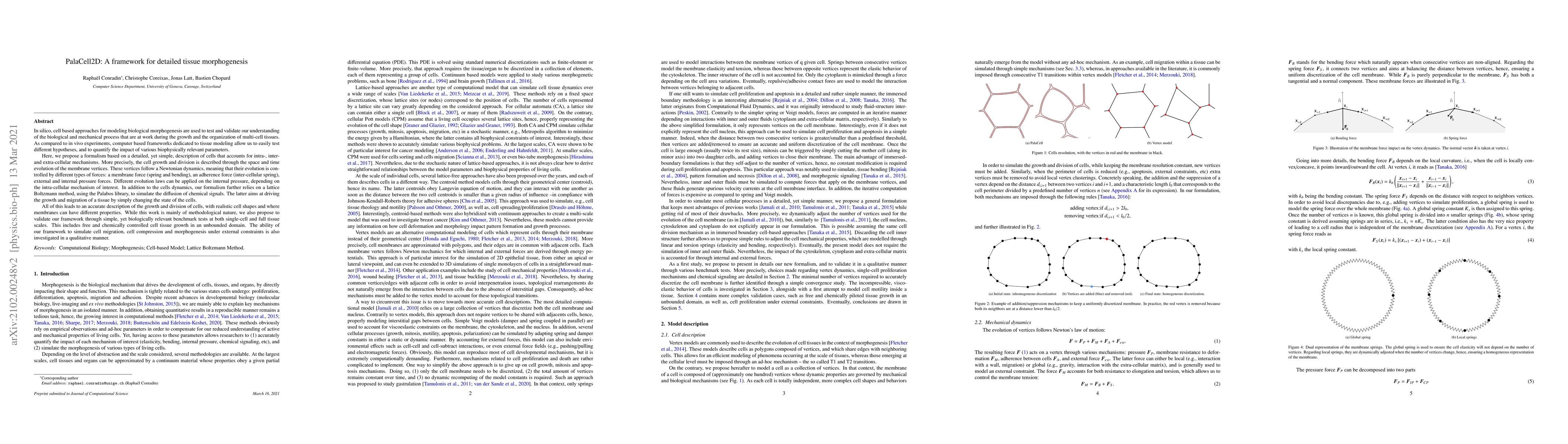 This paper introduces PalaCell2D, a computational framework that simulates tissue morphogenesis using a simplified cell model with realistic membrane properties. It aims to validate the framework through benchmark tests and explore its capabilities in simulating cell migration, compression, and growth under external constraints.