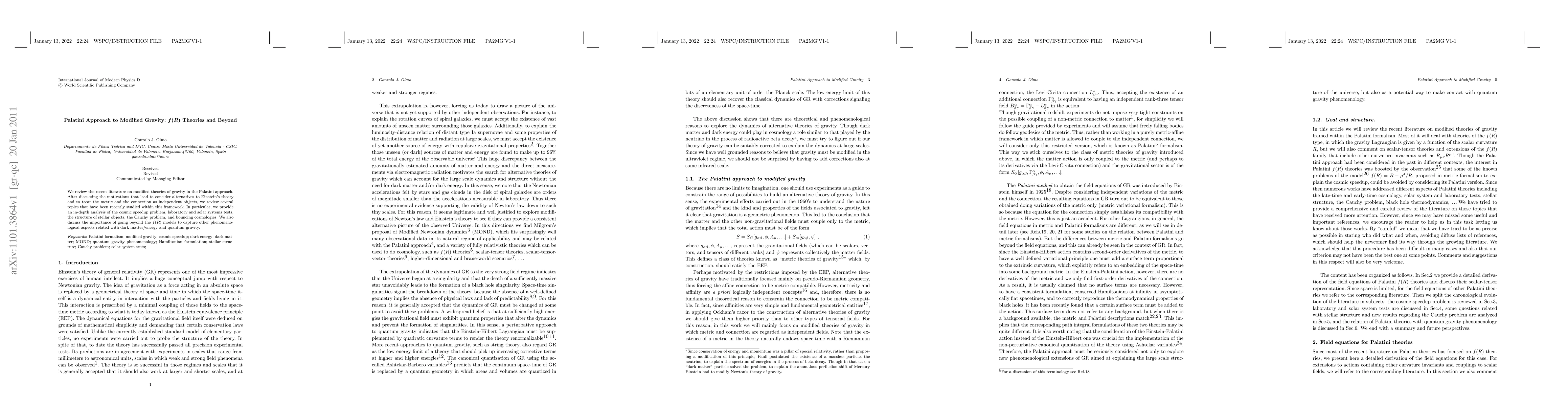This paper reviews the Palatini approach to modified gravity, focusing on f(R) theories and their extensions. It discusses the cosmic speedup problem, tests against solar systems and laboratory experiments, and the implications for stellar objects and cosmology, while also highlighting the need for models beyond f(R) to address dark matter/energy and quantum gravity.