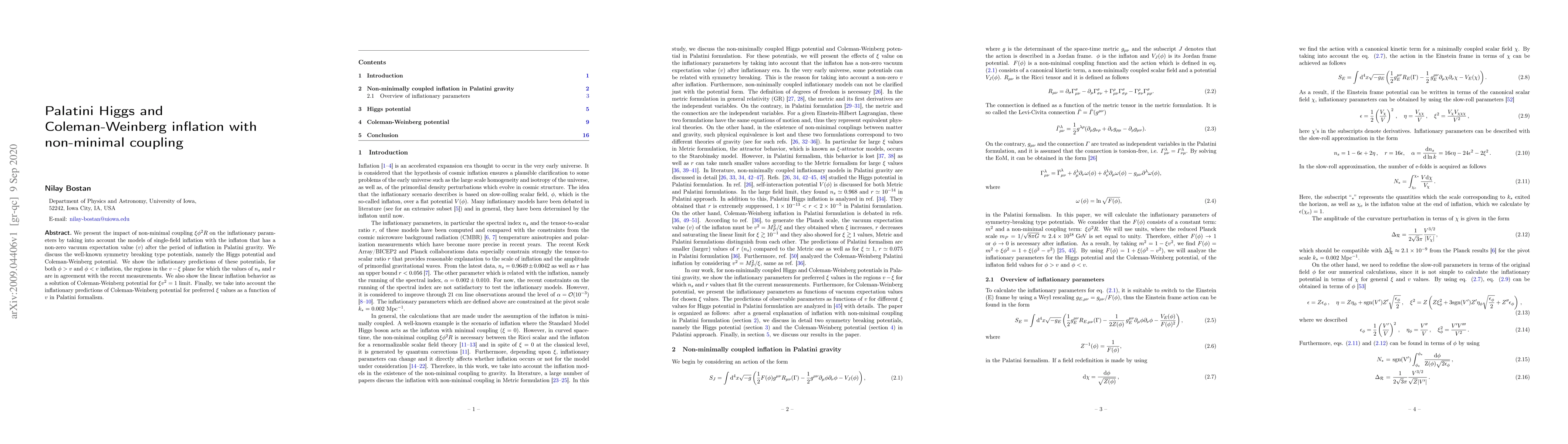We present the impact of non-minimal coupling $\xi \phi^2 R$ on the