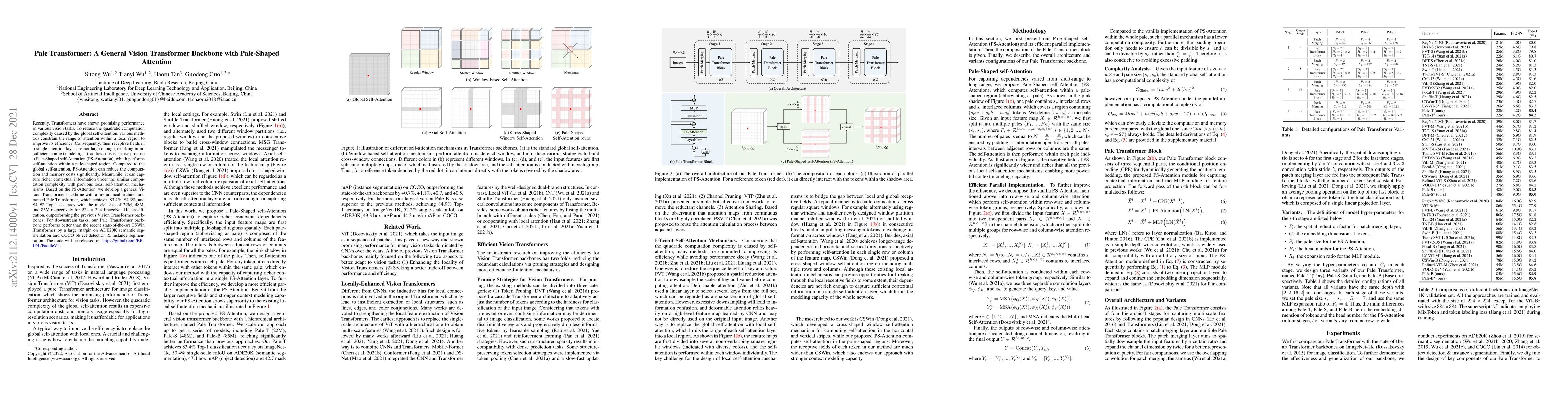 The paper introduces Pale-Shaped self-Attention (PS-Attention) to address the computational complexity of global self-attention in vision transformers. PS-Attention operates within a pale-shaped region, significantly reducing computation and memory costs while capturing richer contextual information. The Pale Transformer backbone, built on PS-Attention, is proposed with a hierarchical architecture, outperforming previous Vision Transformer backbones on ImageNet-1K, ADE20K, and COCO tasks.