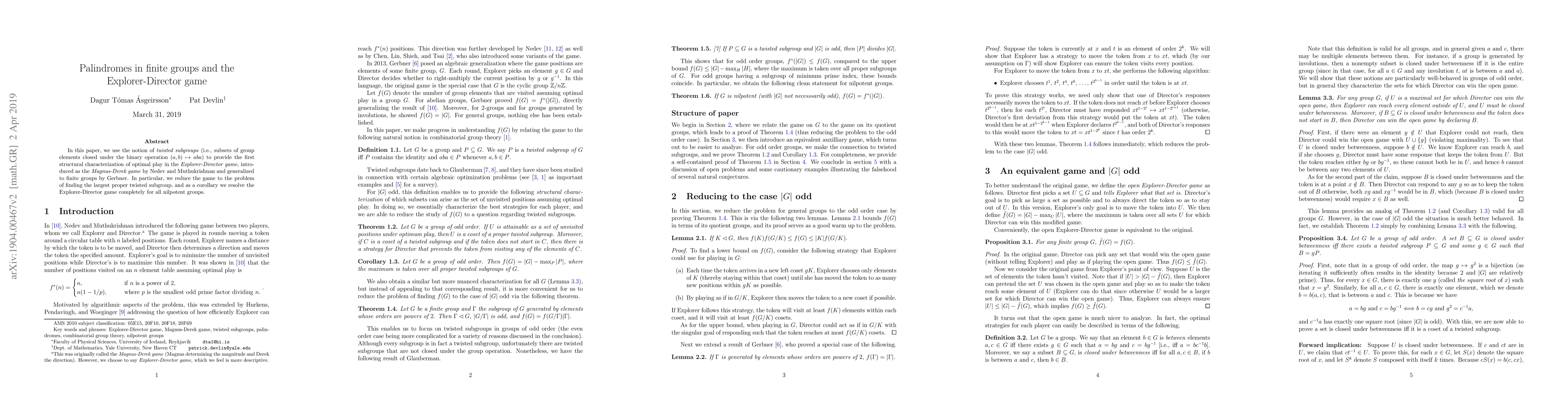 This paper characterizes optimal play in the Explorer-Director game using twisted subgroups, reducing the game to finding the largest proper twisted subgroup and resolving the game for all nilpotent groups.