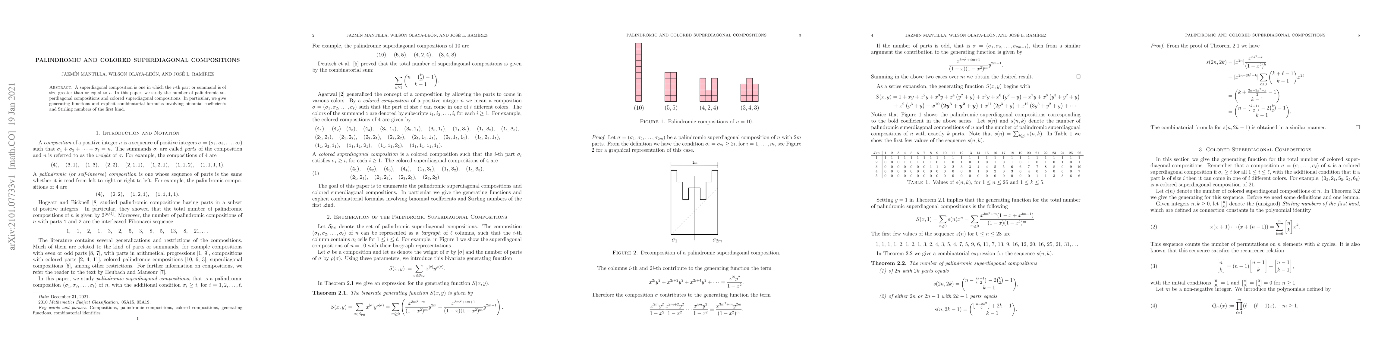A superdiagonal composition is one in which the $i$-th part or summand is of size greater than or equal to $i$. In this paper, we study the number of palindromic superdiagonal compositions and colored superdiagonal compositions. In particular, we give generating functions and explicit combinatorial formulas involving binomial coefficients and Stirling numbers of the first kind.