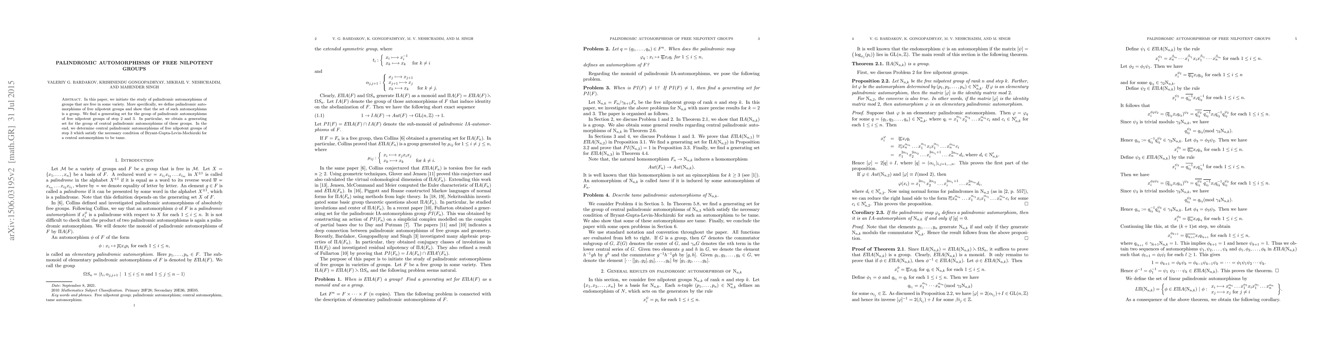 This paper introduces palindromic automorphisms in free nilpotent groups, demonstrating that these form a group. It identifies generating sets for palindromic automorphisms in free nilpotent groups of steps 2 and 3, and specifically for central palindromic automorphisms, and verifies that certain central palindromic automorphisms of step 3 satisfy a tameness condition.