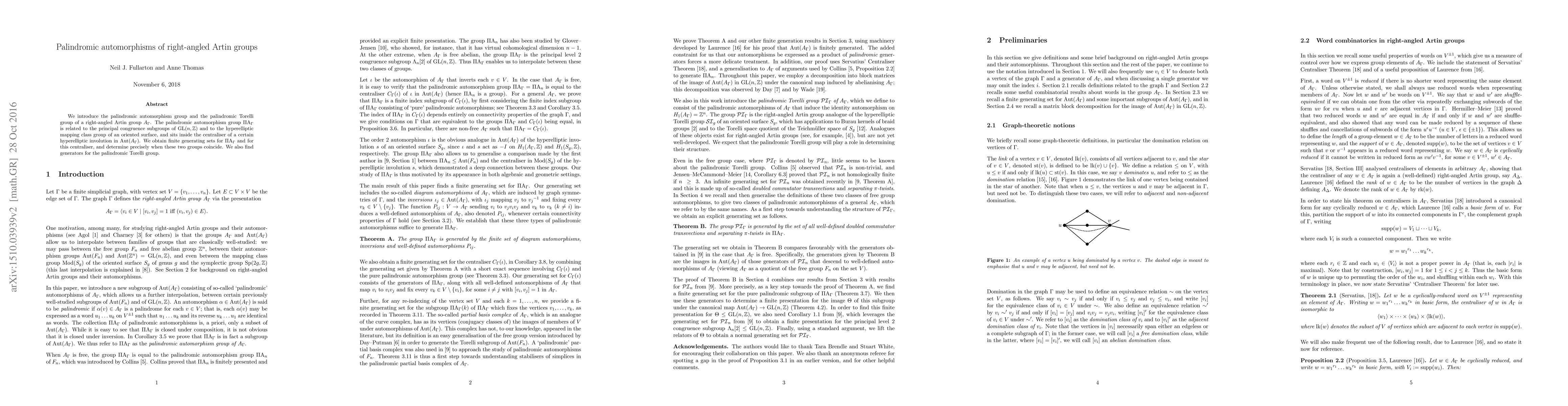 We introduce the palindromic automorphism group and the palindromic Torelli group of a right-angled Artin group A_G. The palindromic automorphism group Pi A_G is related to the principal congruence subgroups of GL(n,Z) and to the hyperelliptic mapping class group of an oriented surface, and sits inside the centraliser of a certain hyperelliptic involution in Aut(A_G). We obtain finite generating sets for Pi A_G and for this centraliser, and determine precisely when these two groups coincide. We also find generators for the palindromic Torelli group.