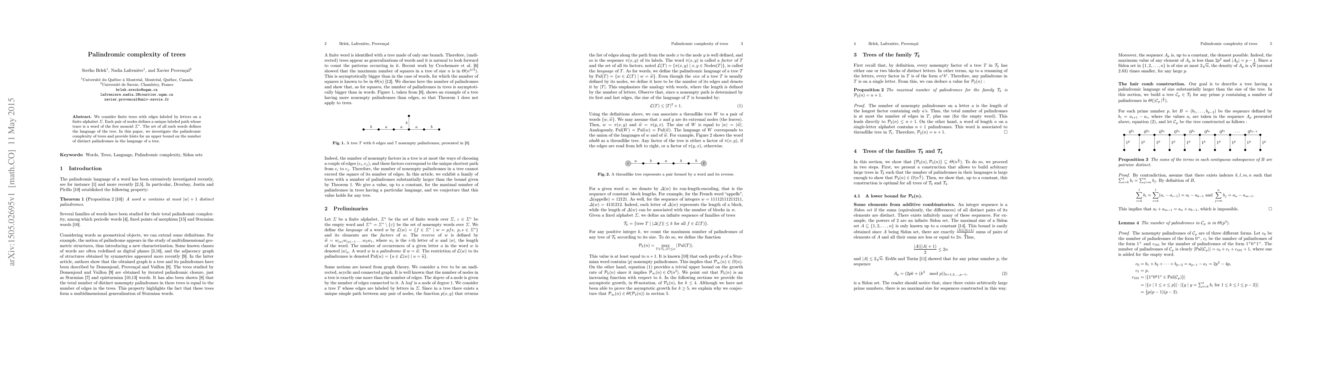 This paper explores finite trees with edge labels from a finite alphabet, analyzing the palindromic complexity of the language generated by all unique labeled paths between nodes. It proposes an upper bound on the number of distinct palindromes in the language of such trees.