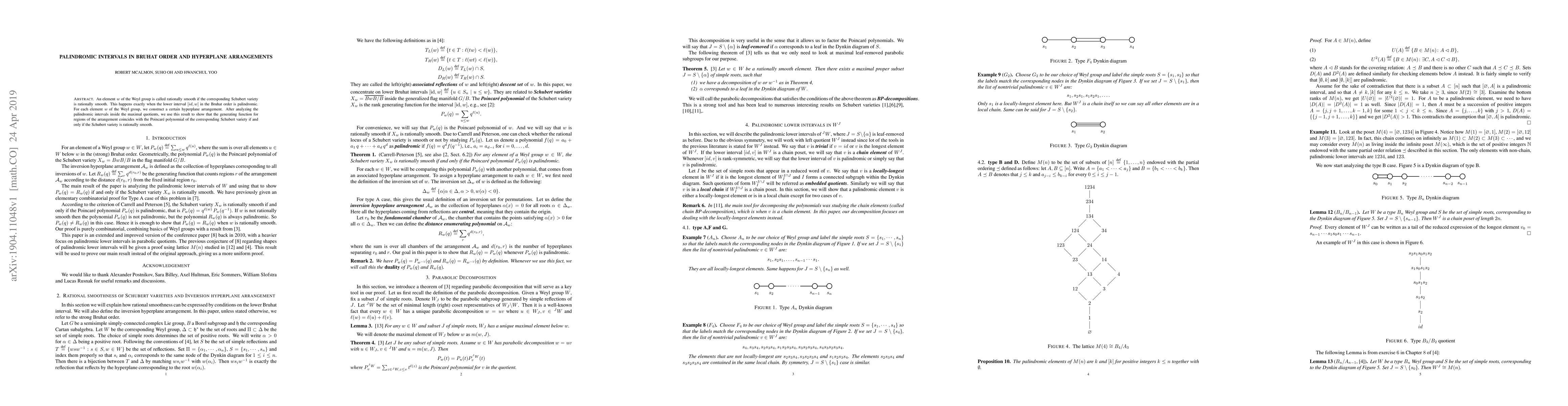 The paper constructs a hyperplane arrangement for each element of the Weyl group and analyzes palindromic intervals in the Bruhat order within maximal quotients to relate the generating function for regions of the arrangement with the Poincaré polynomial of the corresponding Schubert variety.