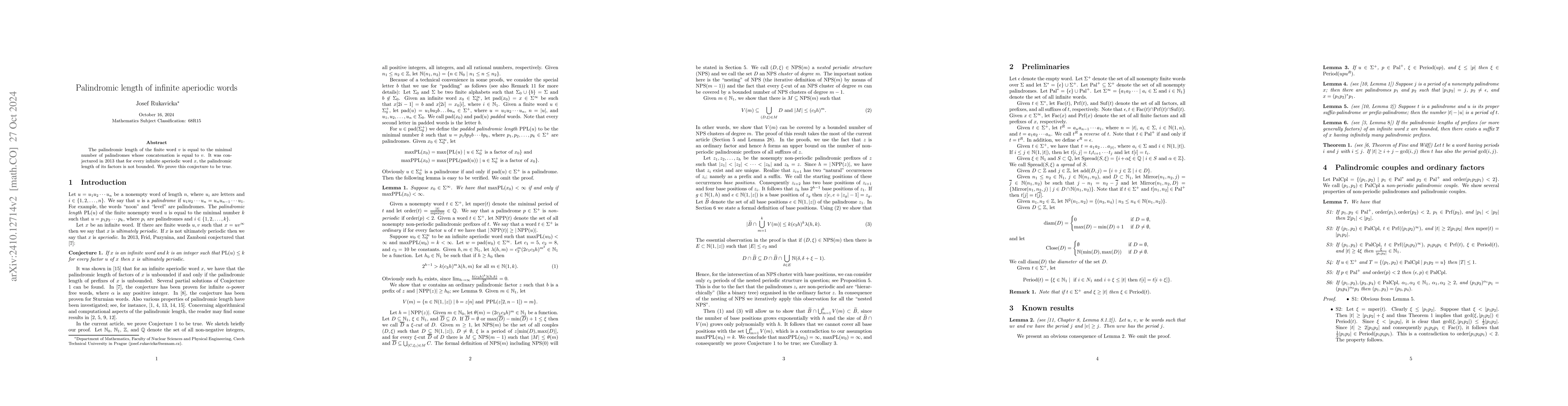 The paper proves that the palindromic length of factors in any infinite aperiodic word is unbounded, confirming a 2013 conjecture. This demonstrates that no limit exists on the minimal number of palindromes needed to concatenate into any factor of such words.