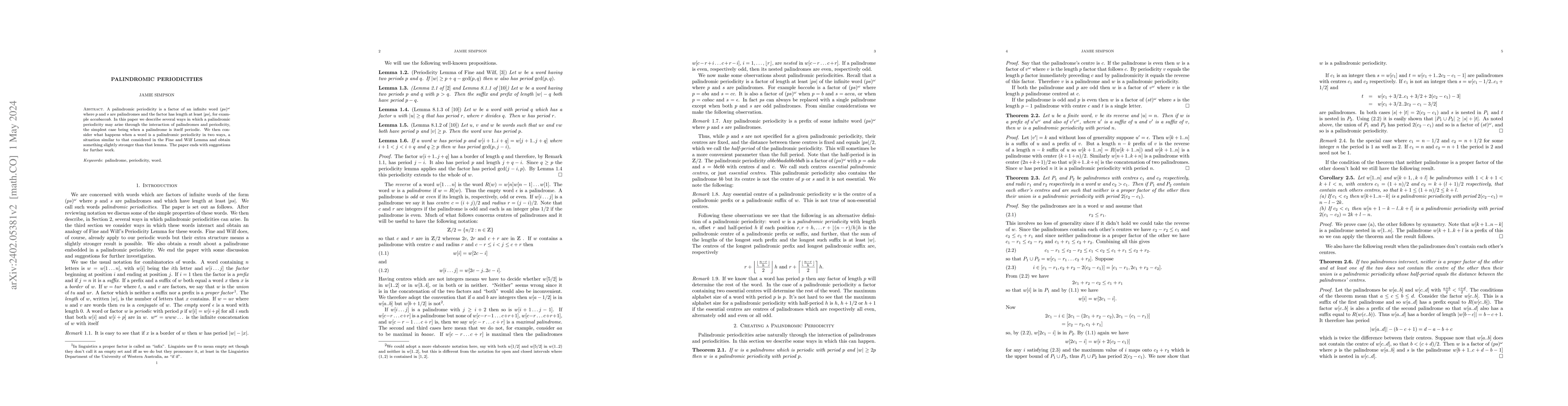 This paper explores palindromic periodicities in infinite words formed by palindromes, examining how these periodicities arise and comparing them to the Fine and Wilf Lemma. It concludes with suggestions for further research on the topic.