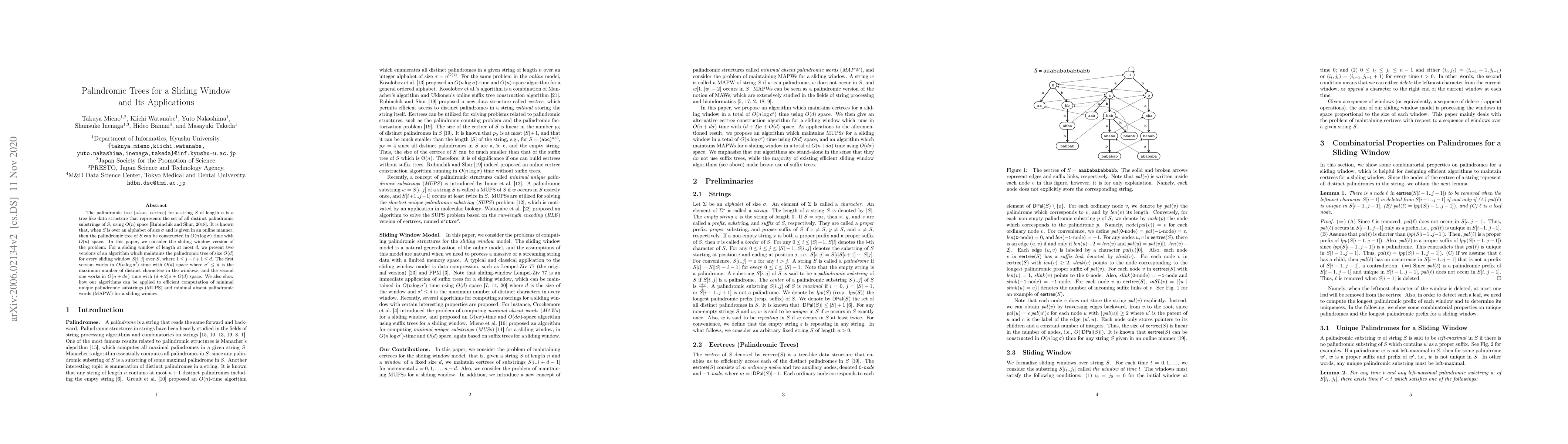 The palindromic tree (a.k.a. eertree) for a string $S$ of length $n$ is a tree-like data structure that represents the set of all distinct palindromic substrings of $S$, using $O(n)$ space [Rubinchik and Shur, 2018]. It is known that, when $S$ is over an alphabet of size $\sigma$ and is given in an online manner, then the palindromic tree of $S$ can be constructed in $O(n\log\sigma)$ time with $O(n)$ space. In this paper, we consider the sliding window version of the problem: For a sliding window of length at most $d$, we present two versions of an algorithm which maintains the palindromic tree of size $O(d)$ for every sliding window $S[i..j]$ over $S$, where $1 \leq j-i+1 \leq d$. The first version works in $O(n\log\sigma')$ time with $O(d)$ space where $\sigma' \leq d$ is the maximum number of distinct characters in the windows, and the second one works in $O(n + d\sigma)$ time with $(d+2)\sigma + O(d)$ space. We also show how our algorithms can be applied to efficient computation of minimal unique palindromic substrings (MUPS) and minimal absent palindromic words (MAPW) for a sliding window.
