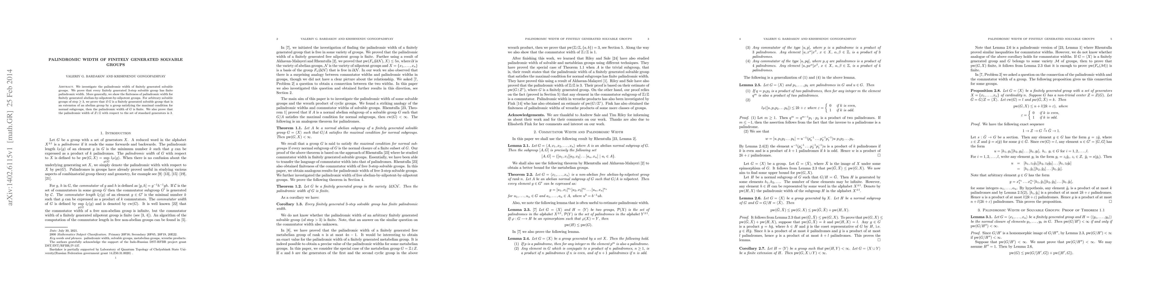 This research establishes finite palindromic width for certain finitely generated solvable groups, specifically $3$-step solvable groups and abelian-by-nilpotent-by-nilpotent groups, as well as for extensions of abelian groups by groups with the maximal condition for normal subgroups. The palindromic width of $\mathbb Z \wr \mathbb Z$ with respect to standard generators is determined to be $3$.