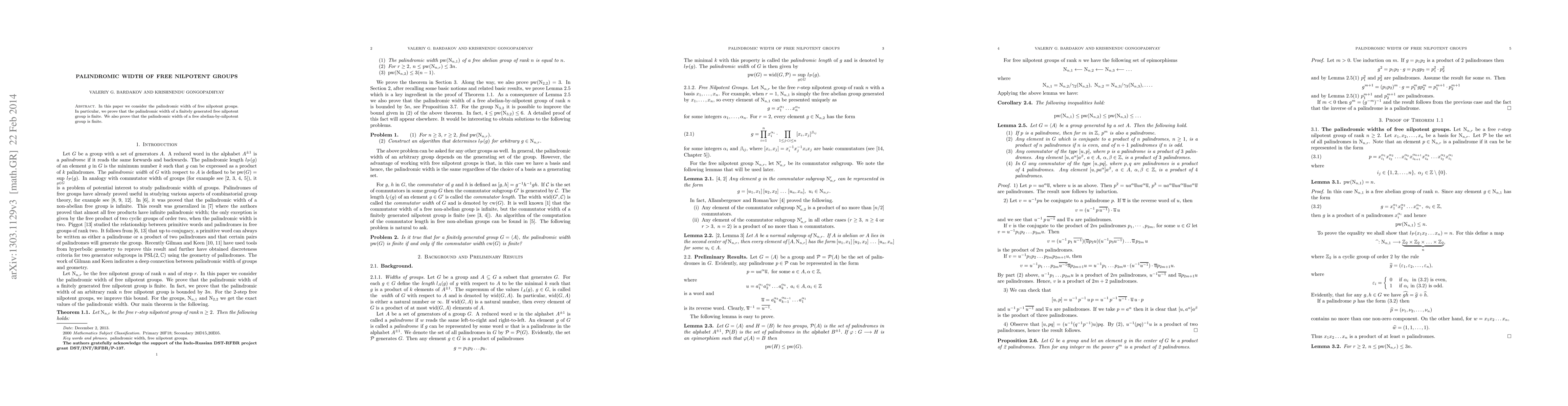 This paper proves that the palindromic width of finitely generated free nilpotent groups is finite. It also establishes the finite palindromic width for free abelian-by-nilpotent groups.