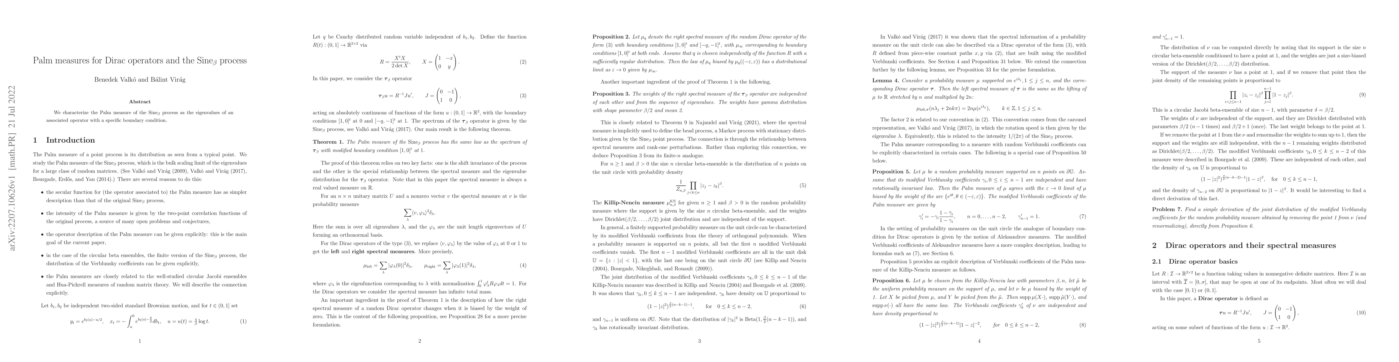 This paper characterizes the Palm measure of the Sine beta process, identifying it with the eigenvalues of a Dirac operator defined with a particular boundary condition. The findings provide a deeper understanding of the statistical properties of this stochastic process.