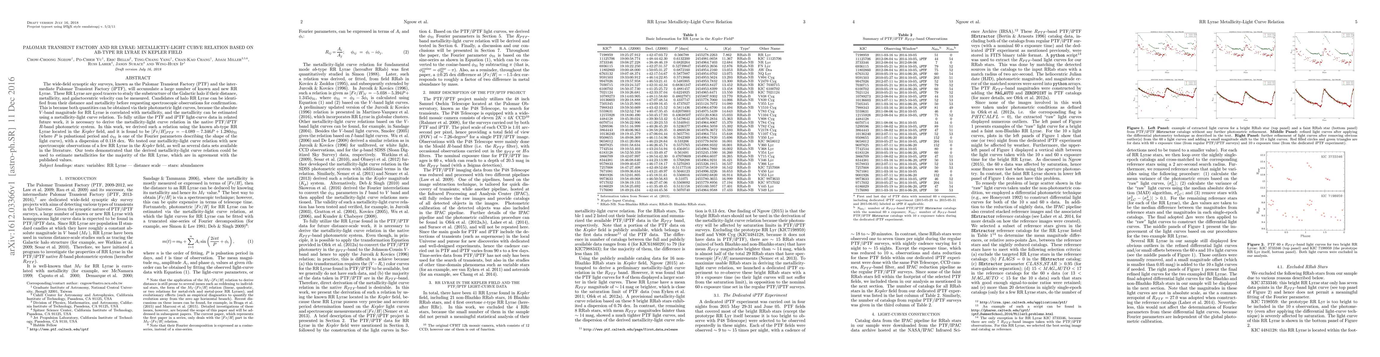 This paper derives a metallicity-light curve relation for ab-type RR Lyrae in the Kepler field using PTF/iPTF R-band data, finding $[Fe/H]_{PTF} = -4.089 - 7.346 P + 1.280 \phi_{31}$. The relation enables estimating metallicities from light curves, aiding in the study of Galactic halo substructure.