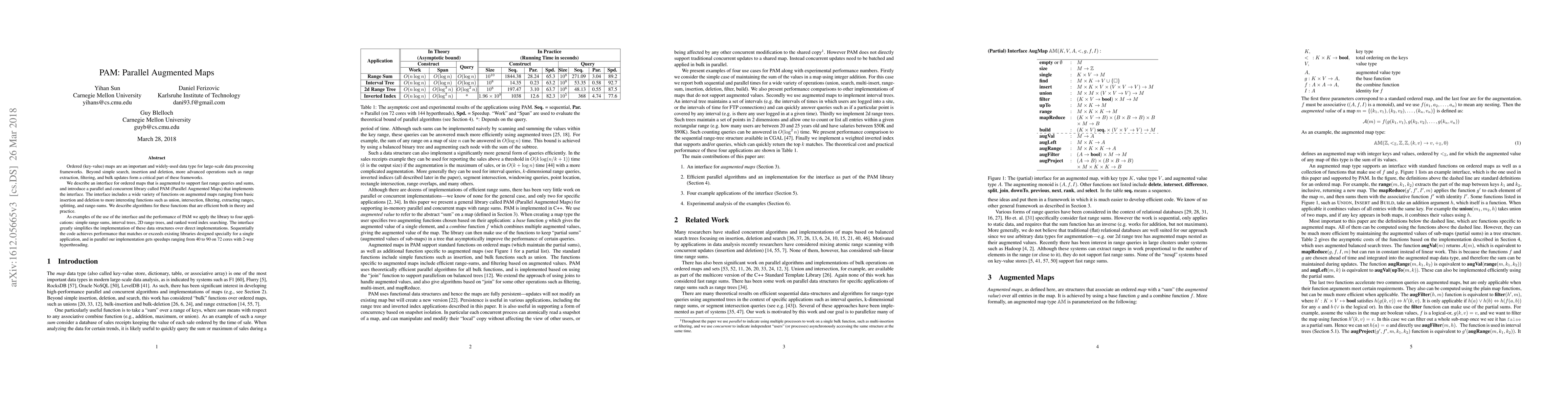 The paper introduces PAM, a parallel and concurrent library for ordered maps that supports advanced operations like range queries and sums, and demonstrates its efficiency through applications like range sums, interval trees, and ranked word index searching, achieving significant speedups in parallel execution.