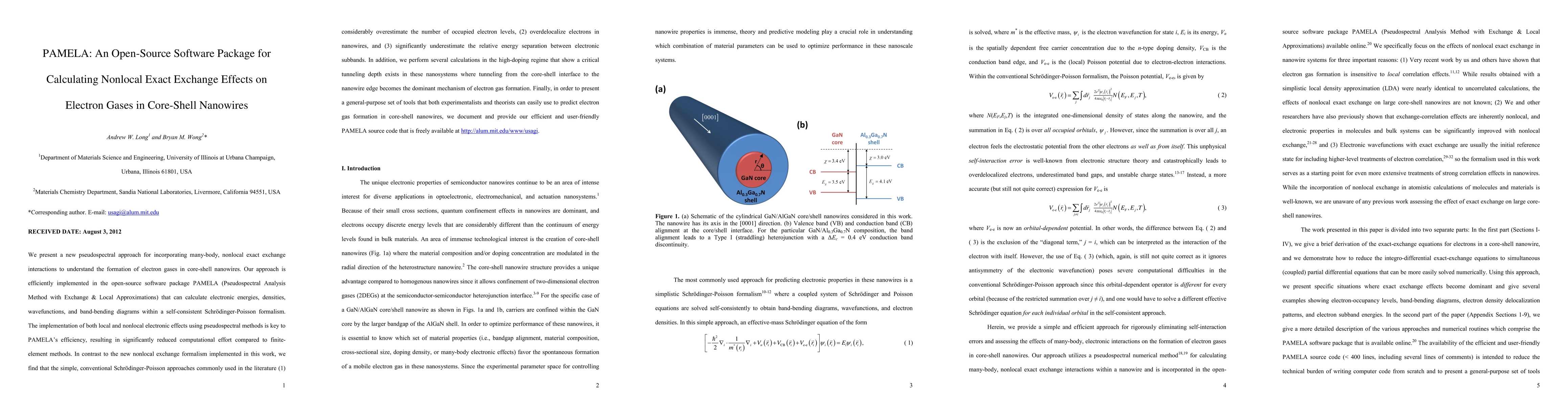 PAMELA is an open-source software package that employs pseudospectral methods to calculate nonlocal exact exchange effects in core-shell nanowires, offering accurate electronic energy and density calculations. It outperforms conventional finite-element methods by significantly reducing computational effort and providing better predictions of electron gas formation in nanowires.