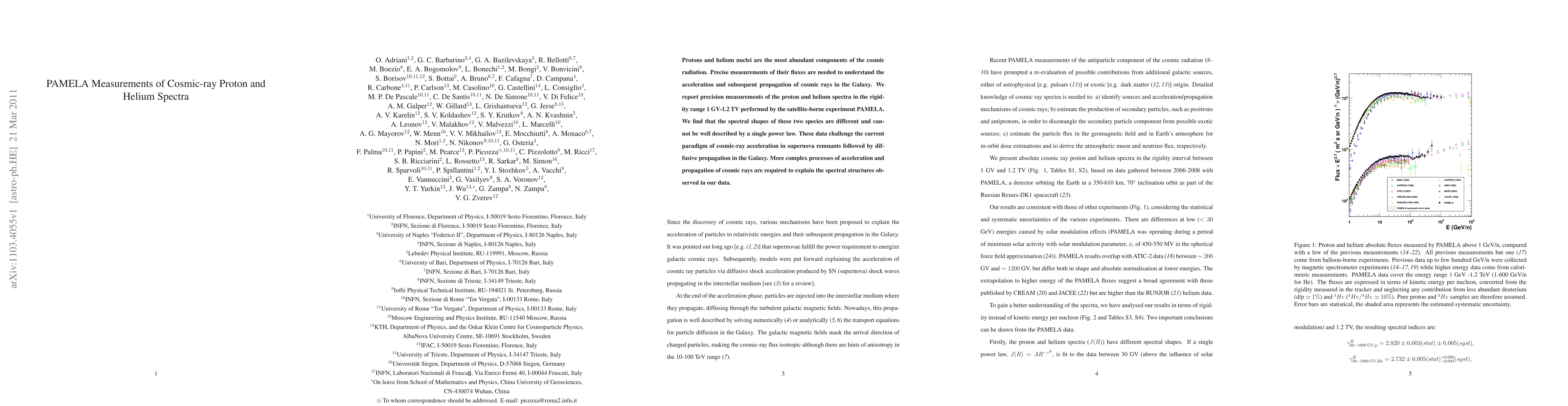 The PAMELA satellite experiment provides precise measurements of cosmic-ray proton and helium spectra, revealing distinct spectral shapes that challenge the current model of cosmic-ray acceleration and propagation. These findings suggest more complex processes are needed to explain the observed spectral structures.
