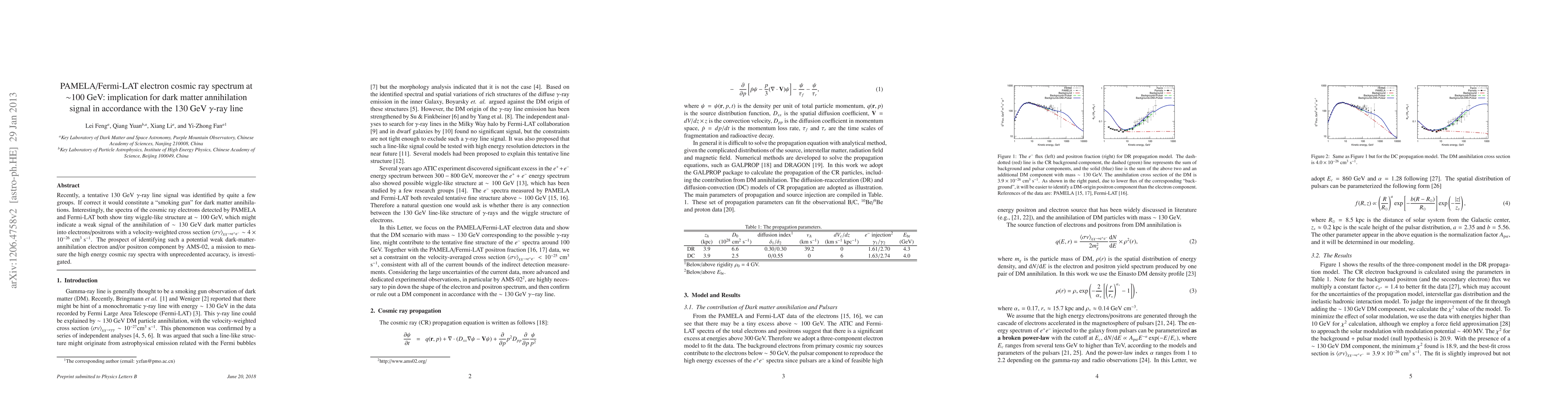 This paper investigates the cosmic ray electron spectrum at ~100 GeV detected by PAMELA and Fermi-LAT, finding a potential weak signal that could indicate dark matter annihilation. The study suggests that AMS-02 may further confirm this weak annihilation signal, supporting the hypothesis of a 130 GeV gamma-ray line linked to dark matter.