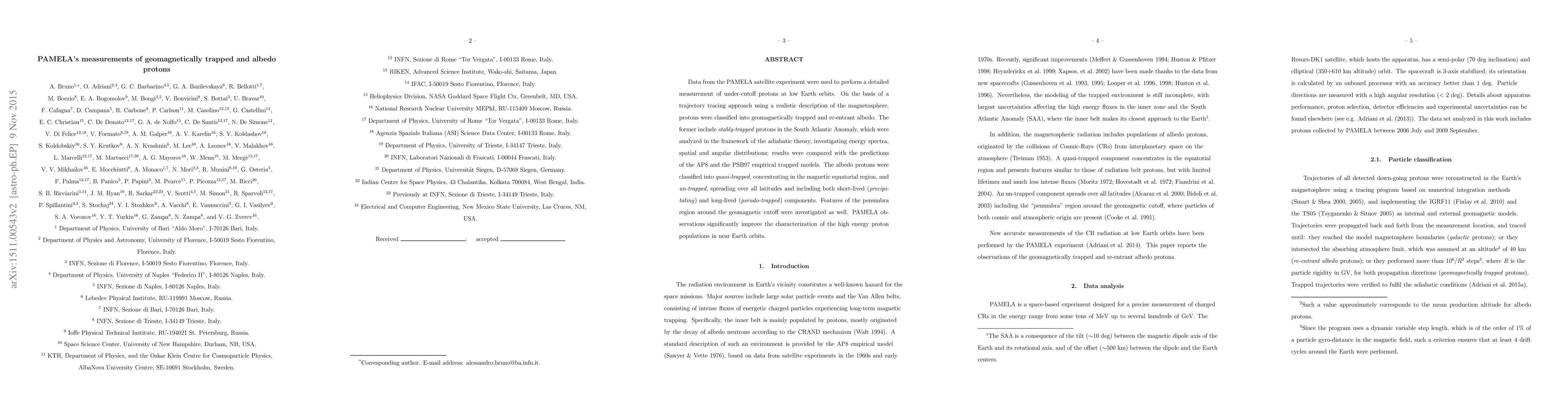The PAMELA satellite experiment was used to measure under-cutoff protons at low Earth orbits, classifying them into geomagnetically trapped and re-entrant albedo using a trajectory tracing approach with realistic magnetosphere description.
