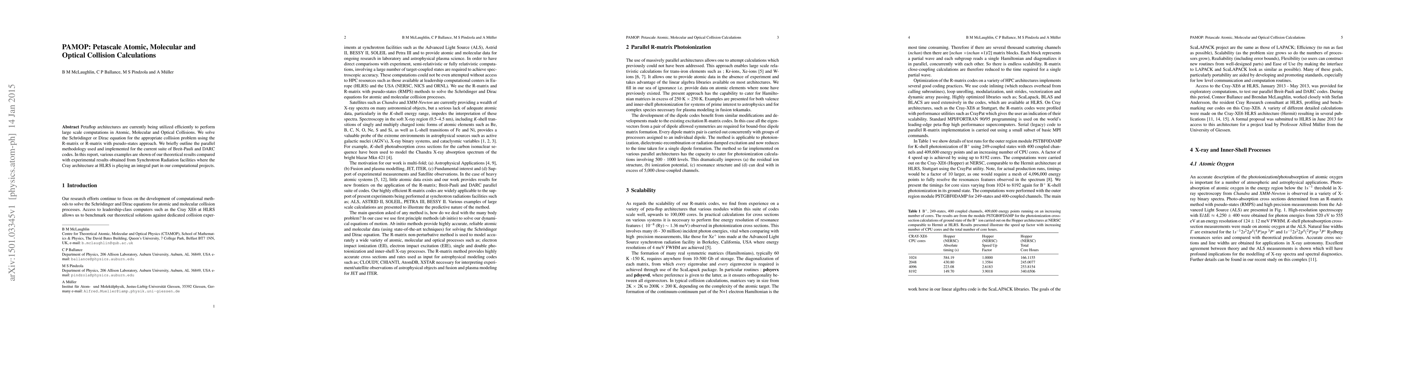 This paper presents a methodology for performing petascale computations in atomic, molecular, and optical collisions using petaflop architectures. It utilizes the R-matrix or R-matrix with pseudo-states approach to solve the Schrödinger or Dirac equations and outlines the parallel implementation for Breit-Pauli and DARC codes, demonstrating theoretical results that align with experimental data from Synchrotron Radiation facilities.