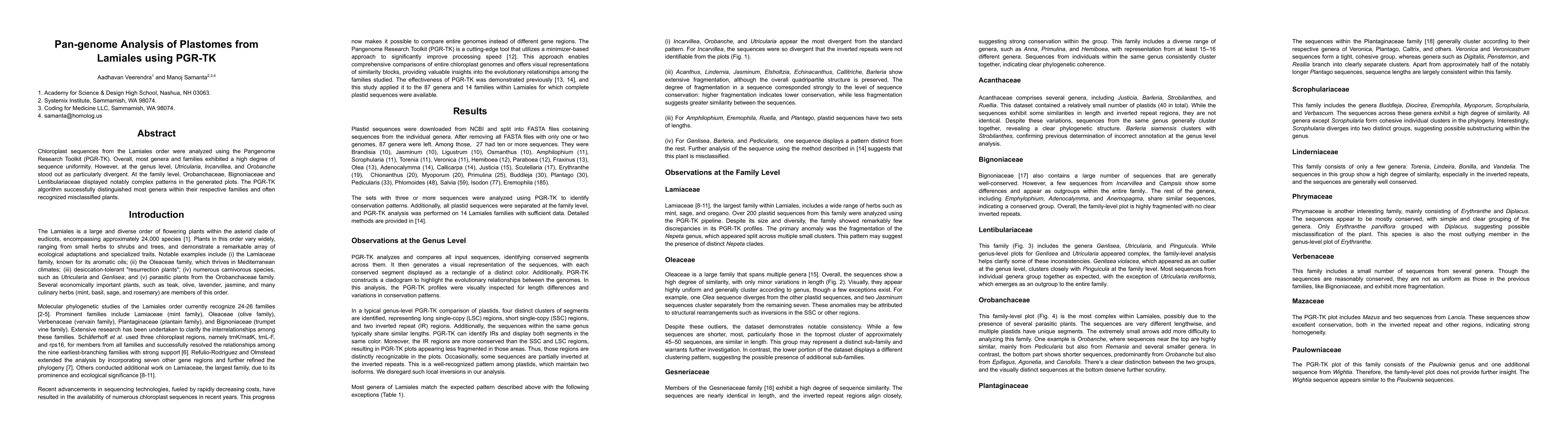 The research utilized the Pangenome Research Toolkit (PGR-TK) to analyze chloroplast sequences from the Lamiales order.
