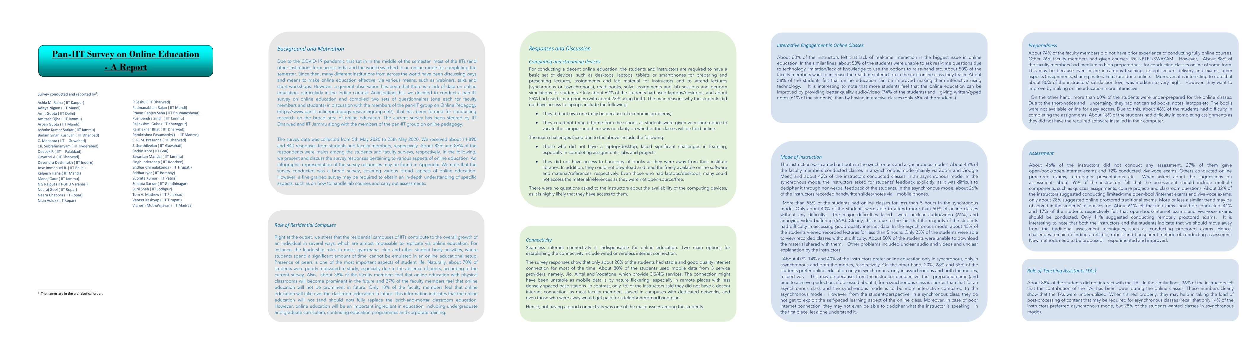 A pan-IIT survey on online education found that 82% of faculty members and 86% of students were males, with responses indicating a need for fine-grained surveys to understand specific aspects of online education, such as lab courses and assessments.