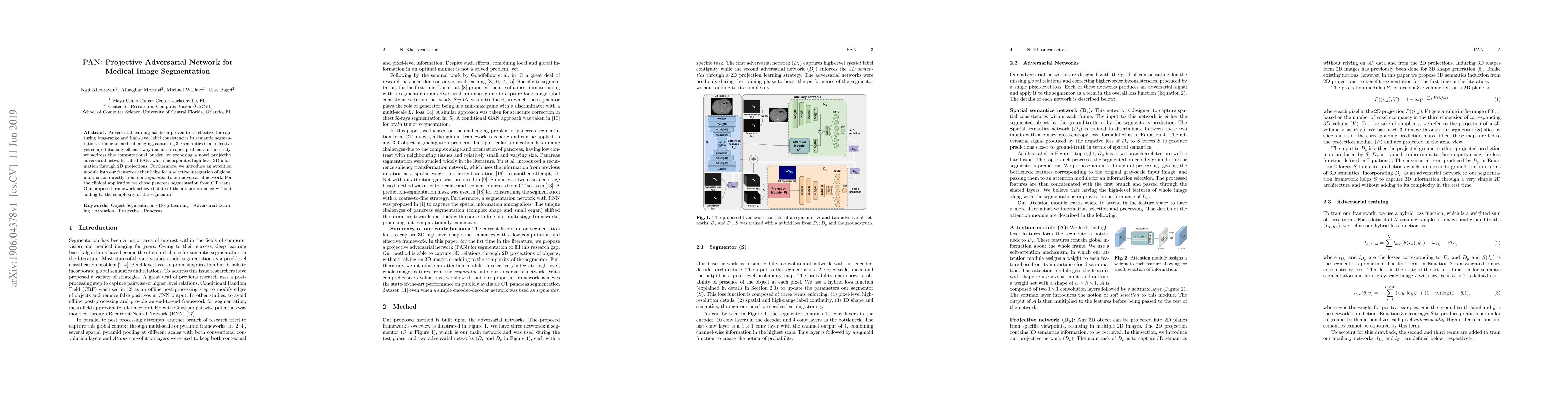 A new neural network architecture called PAN is proposed for medical image segmentation, achieving state-of-the-art performance with reduced computational complexity. It incorporates 2D projections to capture high-level 3D information and an attention module for selective integration of global information.
