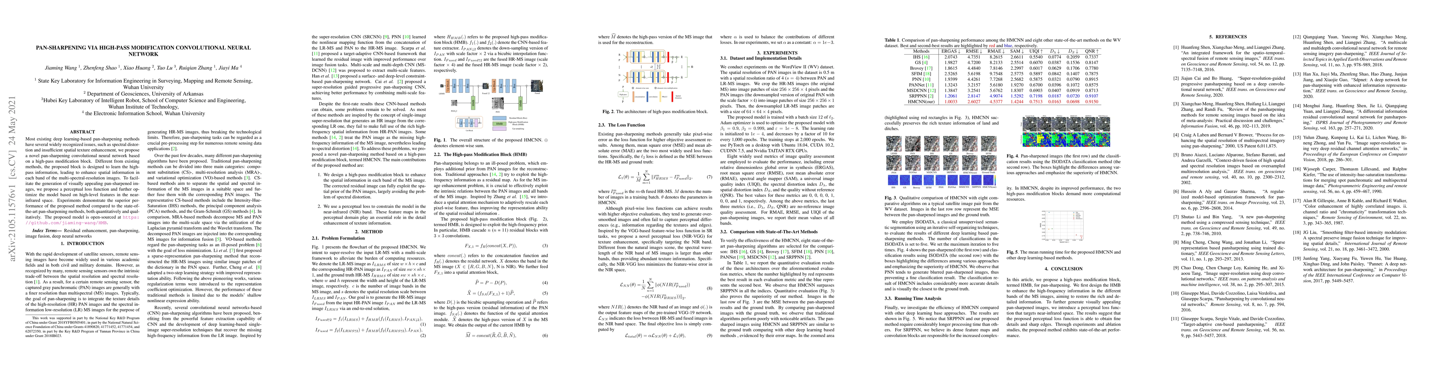 This paper proposes a novel convolutional neural network for pan-sharpening that utilizes a high-pass modification block to enhance spatial information in multi-spectral images. The method employs a perceptual loss function optimized with high-level features to generate visually appealing results, outperforming existing state-of-the-art techniques.