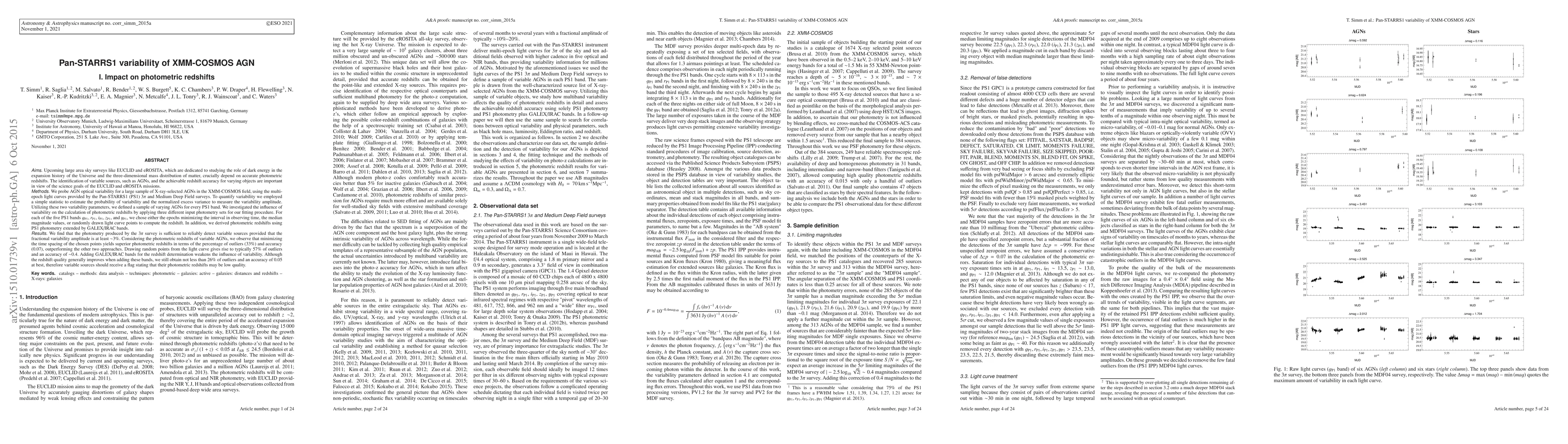 [Abbreviated] Upcoming large area sky surveys like EUCLID and eROSITA crucially depend on accurate photometric redshifts (photo-z). The identification of variable sources, such as AGNs, and the achievable redshift accuracy for varying objects are important in view of the science goals of the EUCLID and eROSITA missions. We probe AGN optical variability for a large sample of X-ray-selected AGNs in the XMM-COSMOS field, using the light curves provided by the Pan-STARRS1 (PS1) 3pi and MDF04 surveys. Utilizing two different variability parameters, we defined a sample of varying AGNs for every PS1 band. We investigated the influence of variability on the calculation of photo-z by applying three different input photometry sets for our fitting procedure. For each of the five PS1 bands, we chose either the epochs minimizing the interval in observing time, the median magnitude values, or randomly drawn light curve points to compute the redshift. In addition, we derived photo-z using PS1 photometry extended by GALEX/IRAC bands. We find that the photometry produced by the 3pi survey is sufficient to reliably detect variable sources provided that the fractional variability amplitude is at least 3%. Considering the photo-z of variable AGNs, we observe that minimizing the time spacing of the chosen points yields superior photo-z in terms of the percentage of outliers (33%) and accuracy (0.07), outperforming the other two approaches. Drawing random points from the light curve gives rise to typically 57% of outliers and an accuracy of 0.4. Adding GALEX/IRAC bands for the redshift determination weakens the influence of variability. Although the redshift quality generally improves when adding these bands, we still obtain not less than 26% of outliers and an accuracy of 0.05 at best, therefore variable sources should receive a flag stating that their photo-z may be low quality.