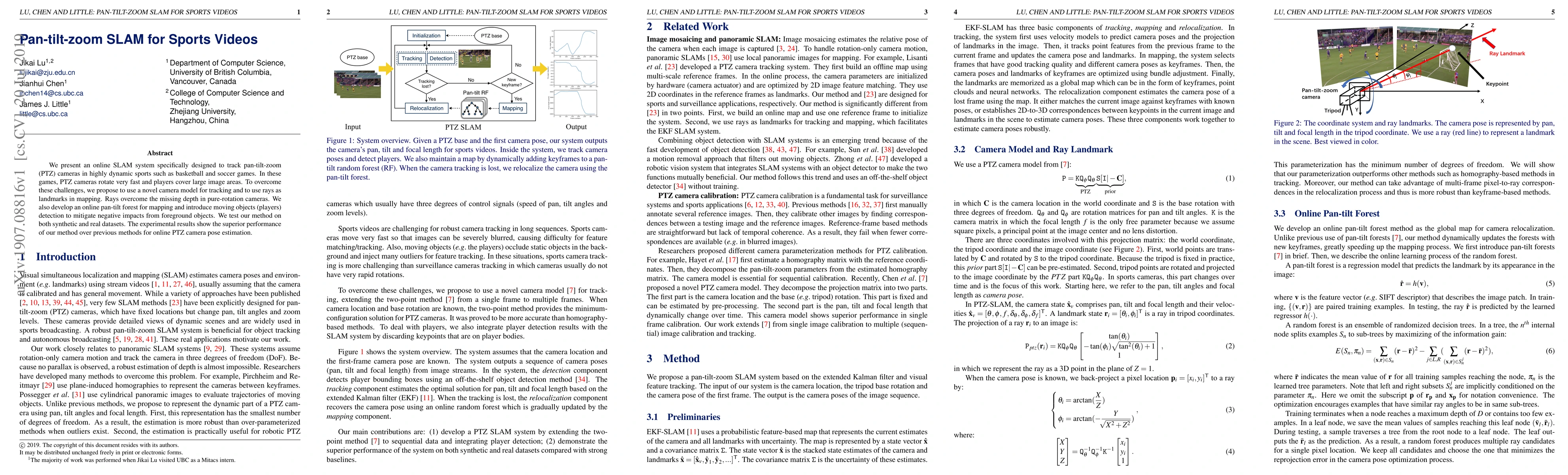 Researchers developed a novel SLAM system to track pan-tilt-zoom cameras in fast-paced sports games, improving performance over existing methods with ray-based landmarks and moving object detection.