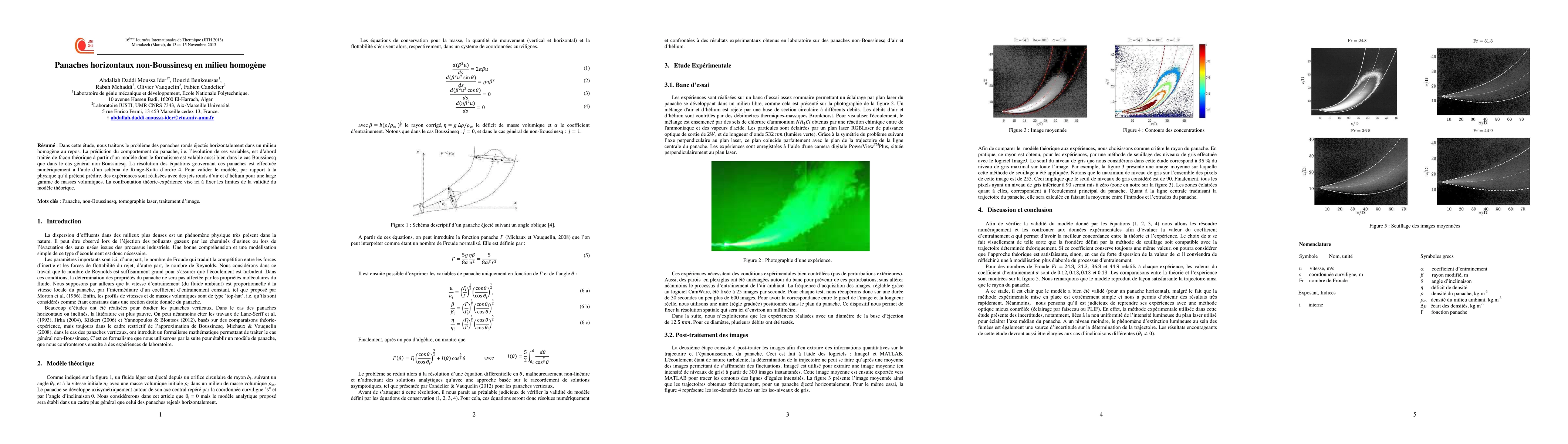 The environmental impact of pollutants and effluents discharged into the atmosphere or the oceans has led researchers to conduct studies related to this issue. Several works have been carried out in this context in order to reduce the effect on the local environment. These types of ejections in nature are modeled as jets in the presence of a density gradient. In this study we treated the problem of inclined round turbulent buoyant jets and plumes ejected in a homogeneous or stratified fluid, at rest or in motion. The prediction of the flow behavior, i.e. the evolution of its variables, is first treated theoretically from a model whose formalism is valid in both the Boussinesq case as well as in the non-Boussinesq general case. Solving the equations governing the plumes is performed numerically using a Runge-Kutta 4th order. To validate the model, laboratory experiments are performed with round jets of air and helium for a wide range of densities. The confrontation theory-experience aims here to fix the limits of validity of the theoretical model. Keywords: Buoyant jet, plume, non-Boussinesq, laser tomography, image processing, perturbation method.