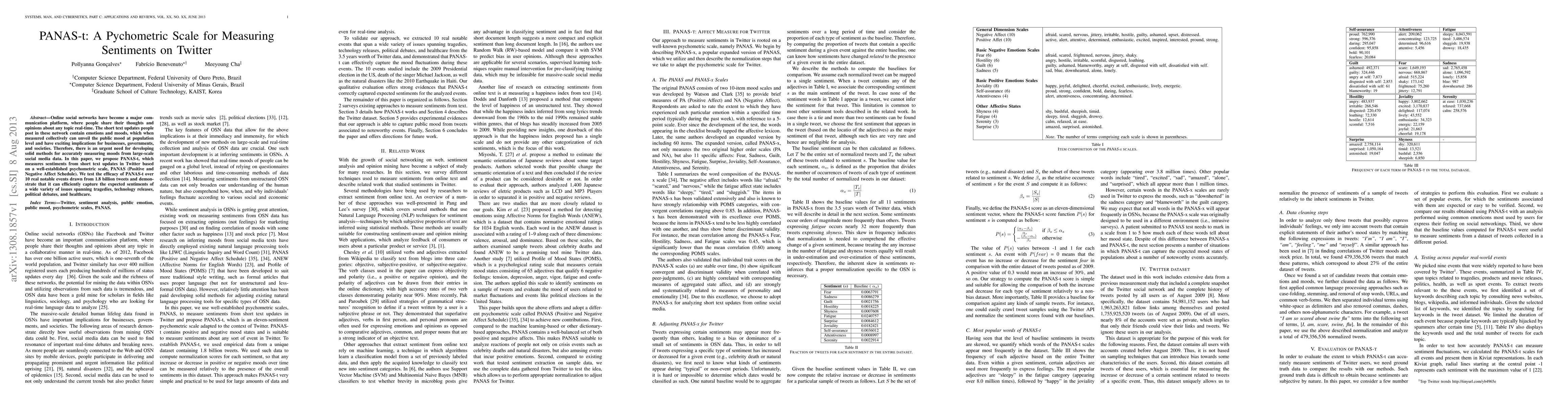 Online social networks have become a major communication platform, where people share their thoughts and opinions about any topic real-time. The short text updates people post in these network contain emotions and moods, which when measured collectively can unveil the public mood at population level and have exciting implications for businesses, governments, and societies. Therefore, there is an urgent need for developing solid methods for accurately measuring moods from large-scale social media data. In this paper, we propose PANAS-t, which measures sentiments from short text updates in Twitter based on a well-established psychometric scale, PANAS (Positive and Negative Affect Schedule). We test the efficacy of PANAS-t over 10 real notable events drawn from 1.8 billion tweets and demonstrate that it can efficiently capture the expected sentiments of a wide variety of issues spanning tragedies, technology releases, political debates, and healthcare.