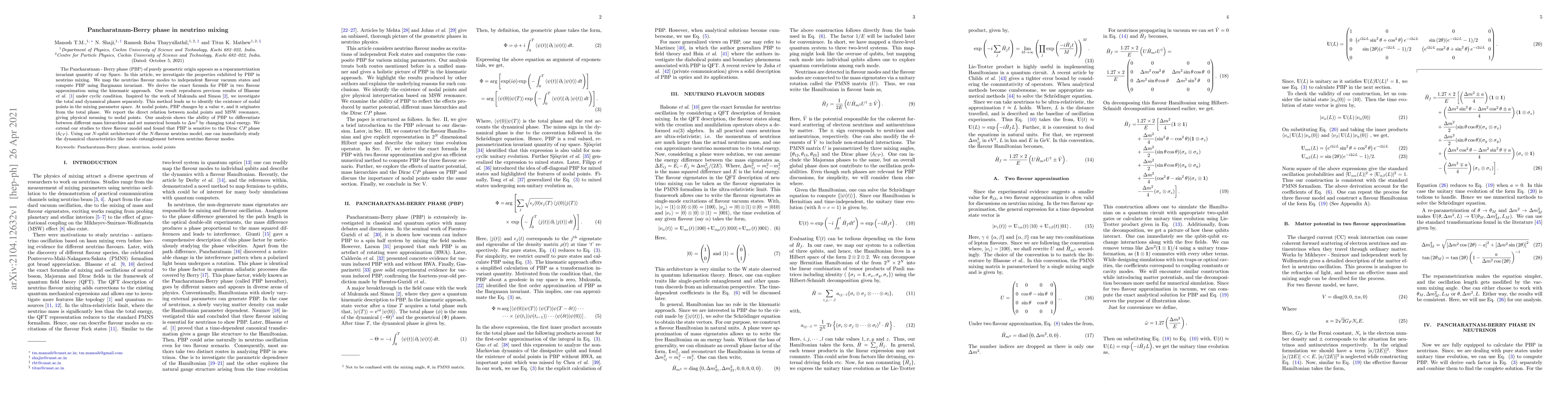 This paper investigates the Pancharatnam-Berry phase (PBP) in neutrino mixing, deriving an exact formula for PBP in a two-flavour model and identifying nodal points where PBP changes by $\pi$, linking these to the Mikheyev-Smirnov-Wolfenstein (MSW) resonance. The study extends to three-flavour models, revealing PBP's sensitivity to the Dirac CP phase and its potential to differentiate mass hierarchies.