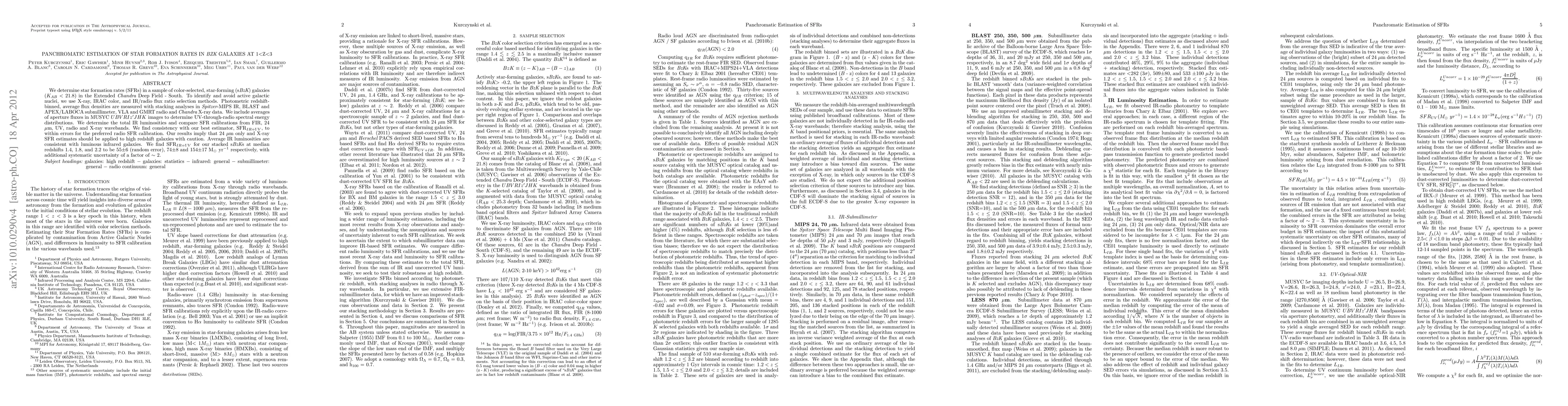 We determine star formation rates (SFRs) in a sample of color-selected, star-forming (sBzK) galaxies (K(AB)<21.8) in the Extended Chandra Deep Field - South. To identify and avoid active galactic nuclei, we use X-ray, IRAC color, and IR/radio flux ratio selection methods. Photometric redshift-binned, average flux densities are measured with stacking analyses in Spitzer-MIPS IR, BLAST and APEX/LABOCA submillimeter, VLA and GMRT radio and Chandra X-ray data. We include averages of aperture fluxes in MUSYC UBVRIz'JHK images to determine UV-through-radio spectral energy distributions. We determine the total IR luminosities and compare SFR calibrations from FIR, 24 micron, UV, radio and X-ray wavebands. We find consistency with our best estimator, SFR(IR+UV), to within errors for the preferred radio SFR calibration. Our results imply that 24 micron only and X-ray SFR estimates should be applied to high redshift galaxies with caution. Average IR luminosities are consistent with luminous infrared galaxies. We find SFR(IR+UV) for our stacked sBzKs at median redshifts 1.4, 1.8, and 2.2 to be 55+/-6 (random error), 74+/-8 and 154+/-17 Msun yr^-1 respectively, with additional systematic uncertainty of a factor of ~2.