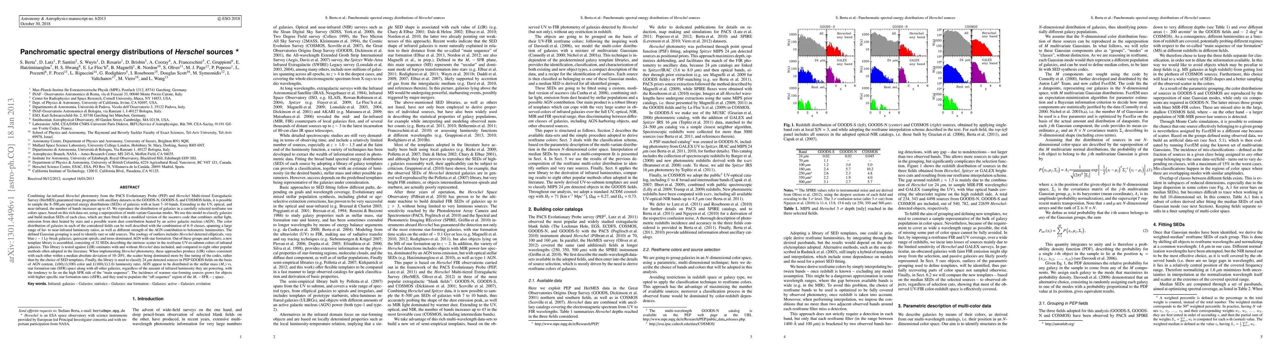 (abridged) Far-infrared Herschel photometry from the PEP and HerMES programs is combined with ancillary datasets in the GOODS-N, GOODS-S, and COSMOS fields. Based on this rich dataset, we reproduce the restframe UV to FIR ten-colors distribution of galaxies using a superposition of multi-variate Gaussian modes. The median SED of each mode is then fitted with a modified version of the MAGPHYS code that combines stellar light, emission from dust heated by stars and a possible warm dust contribution heated by an AGN. The defined Gaussian grouping is also used to identify rare sources. The zoology of outliers includes Herschel-detected ellipticals, very blue z~1 Ly-break galaxies, quiescent spirals, and torus-dominated AGN with star formation. Out of these groups and outliers, a new template library is assembled, consisting of 32 SEDs describing the intrinsic scatter in the restframe UV-to-submm colors of infrared galaxies. This library is tested against L(IR) estimates with and without Herschel data included, and compared to eight other popular methods often adopted in the literature. When implementing Herschel photometry, these approaches produce L(IR) values consistent with each other within a median absolute deviation of 10-20%, the scatter being dominated more by fine tuning of the codes, rather than by the choice of SED templates. Finally, the library is used to classify 24 micron detected sources in PEP GOODS fields. AGN appear to be distributed in the stellar mass (M*) vs. star formation rate (SFR) space along with all other galaxies, regardless of the amount of infrared luminosity they are powering, with the tendency to lie on the high SFR side of the "main sequence". The incidence of warmer star-forming sources grows for objects with higher specific star formation rates (sSFR), and they tend to populate the "off-sequence" region of the M*-SFR-z space.