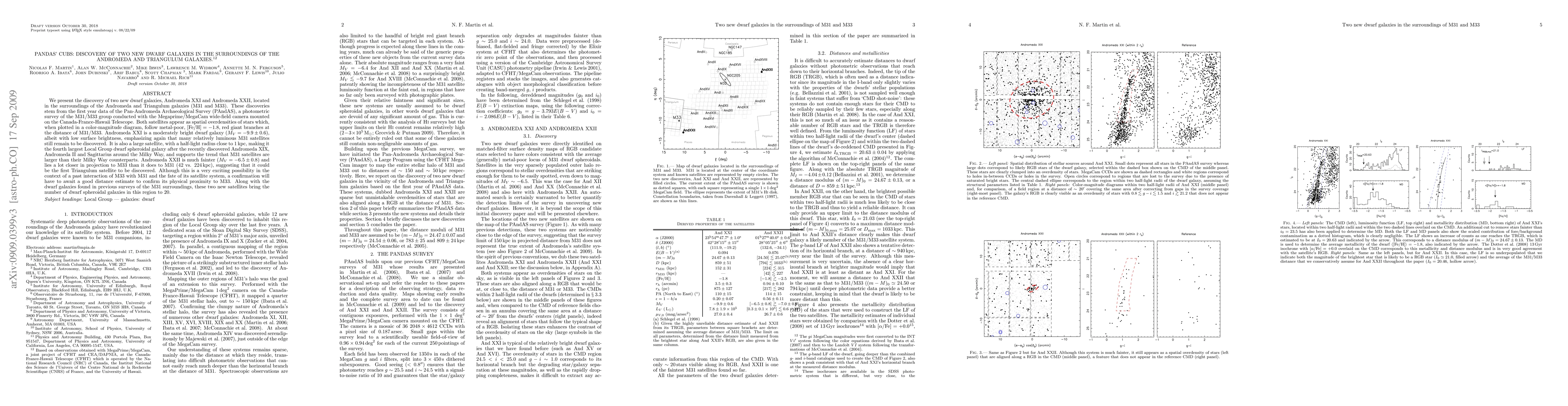 The Pan-Andromeda Archaeological Survey (PAndAS) has identified two new dwarf galaxies, Andromeda XXI and XXII, near the Andromeda (M31) and Triangulum (M33) galaxies, expanding the known satellite population of the Local Group to 20.