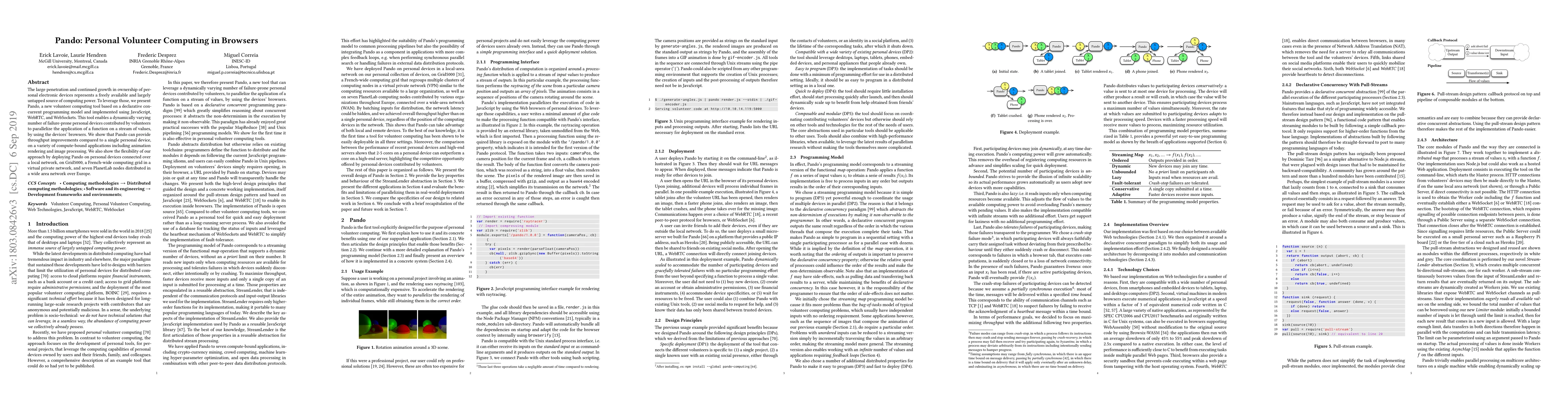 The large penetration and continued growth in ownership of personal electronic devices represents a freely available and largely untapped source of computing power. To leverage those, we present Pando, a new volunteer computing tool based on a declarative concurrent programming model and implemented using JavaScript, WebRTC, and WebSockets. This tool enables a dynamically varying number of failure-prone personal devices contributed by volunteers to parallelize the application of a function on a stream of values, by using the devices' browsers. We show that Pando can provide throughput improvements compared to a single personal device, on a variety of compute-bound applications including animation rendering and image processing. We also show the flexibility of our approach by deploying Pando on personal devices connected over a local network, on Grid5000, a French-wide computing grid in a virtual private network, and seven PlanetLab nodes distributed in a wide area network over Europe.