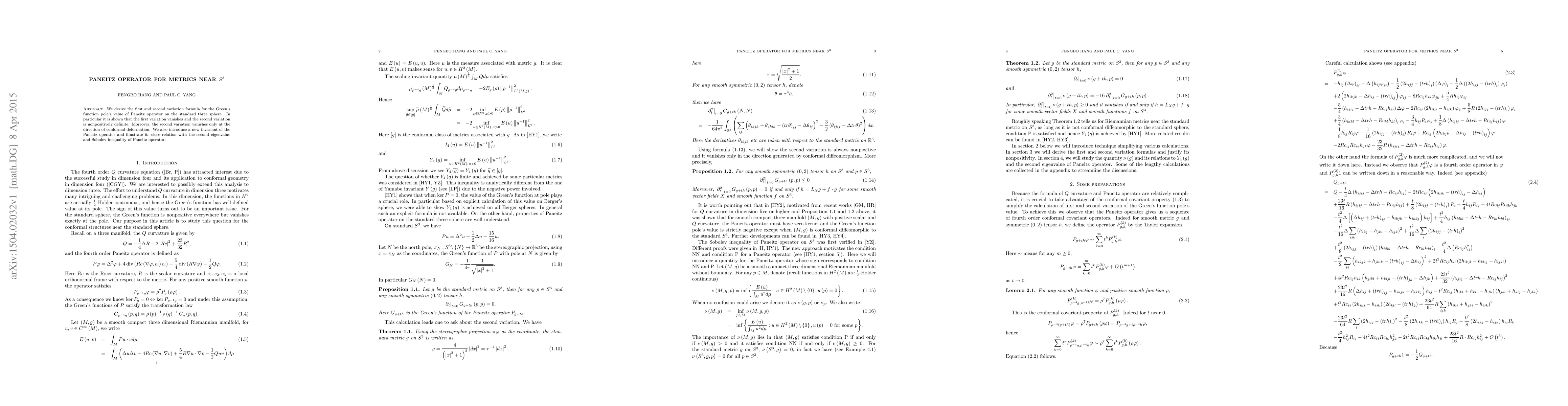We derive the first and second variation formula for the Green's function pole's value of Paneitz operator on the standard three sphere. In particular it is shown that the first variation vanishes and the second variation is nonpositively definite. Moreover, the second variation vanishes only at the direction of conformal deformation. We also introduce a new invariant of the Paneitz operator and illustrate its close relation with the second eigenvalue and Sobolev inequality of Paneitz operator.